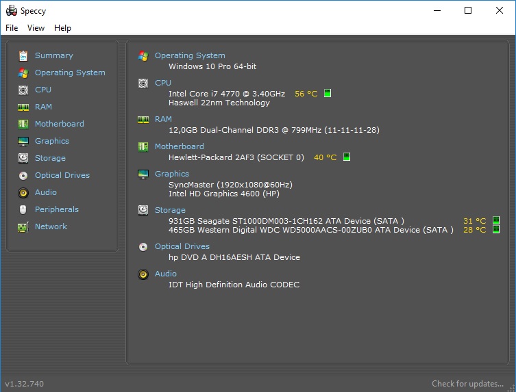 Speccy - jeodoch mit Onboard Grafik, da ich die RX 570 ausgebaut habe- Netzteil hat 500 Watt.