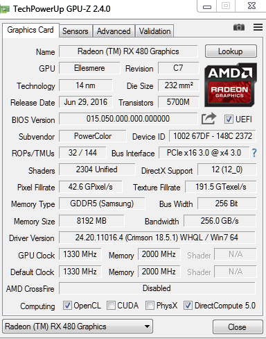 8GB PowerColor Radeon RX 480 Red Devil Aktiv PCIe 3.0 x16 1xDVI / 1xHDMI 2.0 / 3xDisplayPort (Retail)