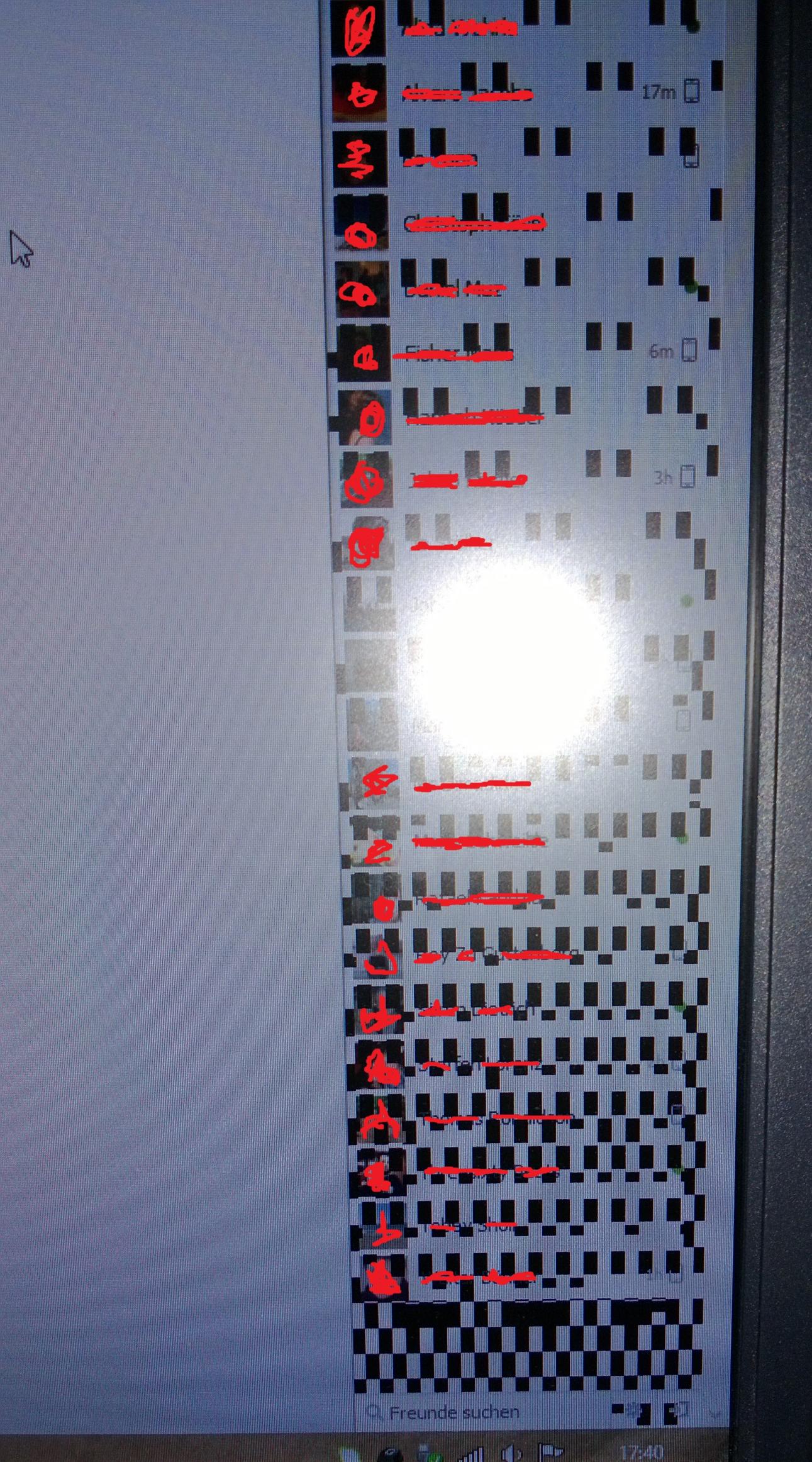 Habe zuerst ein Bild gemacht, da mit dem Snipping-Tool der Fehler verschwindet; später gemerkt, dass die Druck-Taste den Fehler aber aufnimmt. Deshalb zwei unterschiedliche Screens (das rote Gepinsel ist von mir):