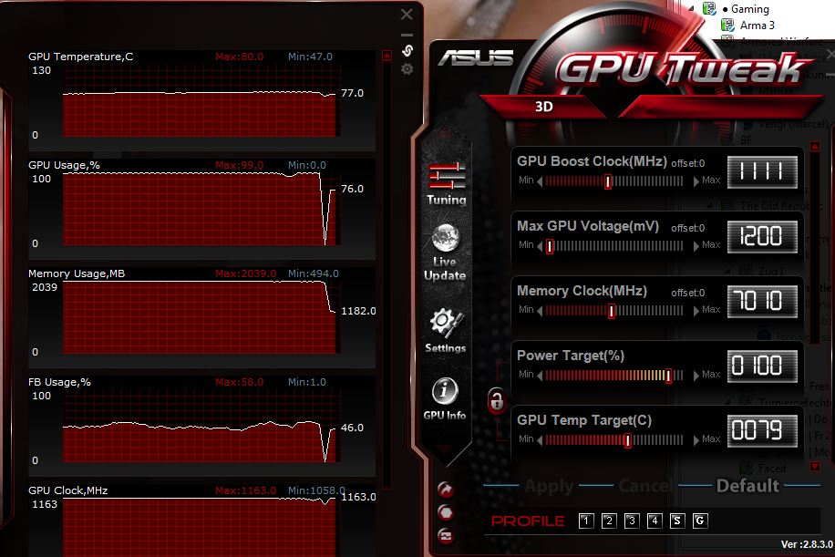 Temp. war 76°C. habe Target °C auf 80 gestellt gehabt.
