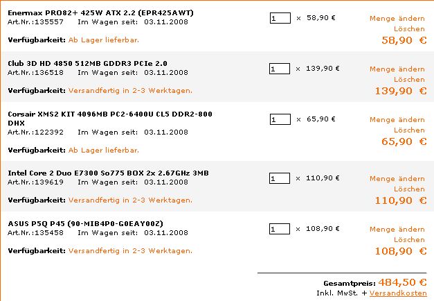 zu Weihnachten wollte ich mir folgende neue Komponenten gönnen: