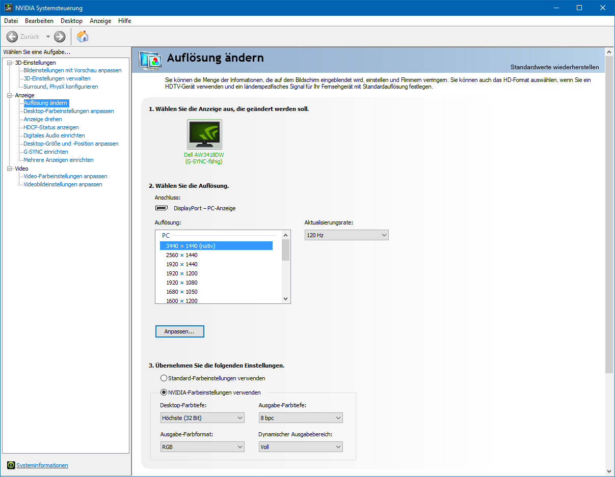 Der Monitor ist auf 1920x1080 eingestellt und 75Hz. Auch bei 60Hz verbessert sich nichts.