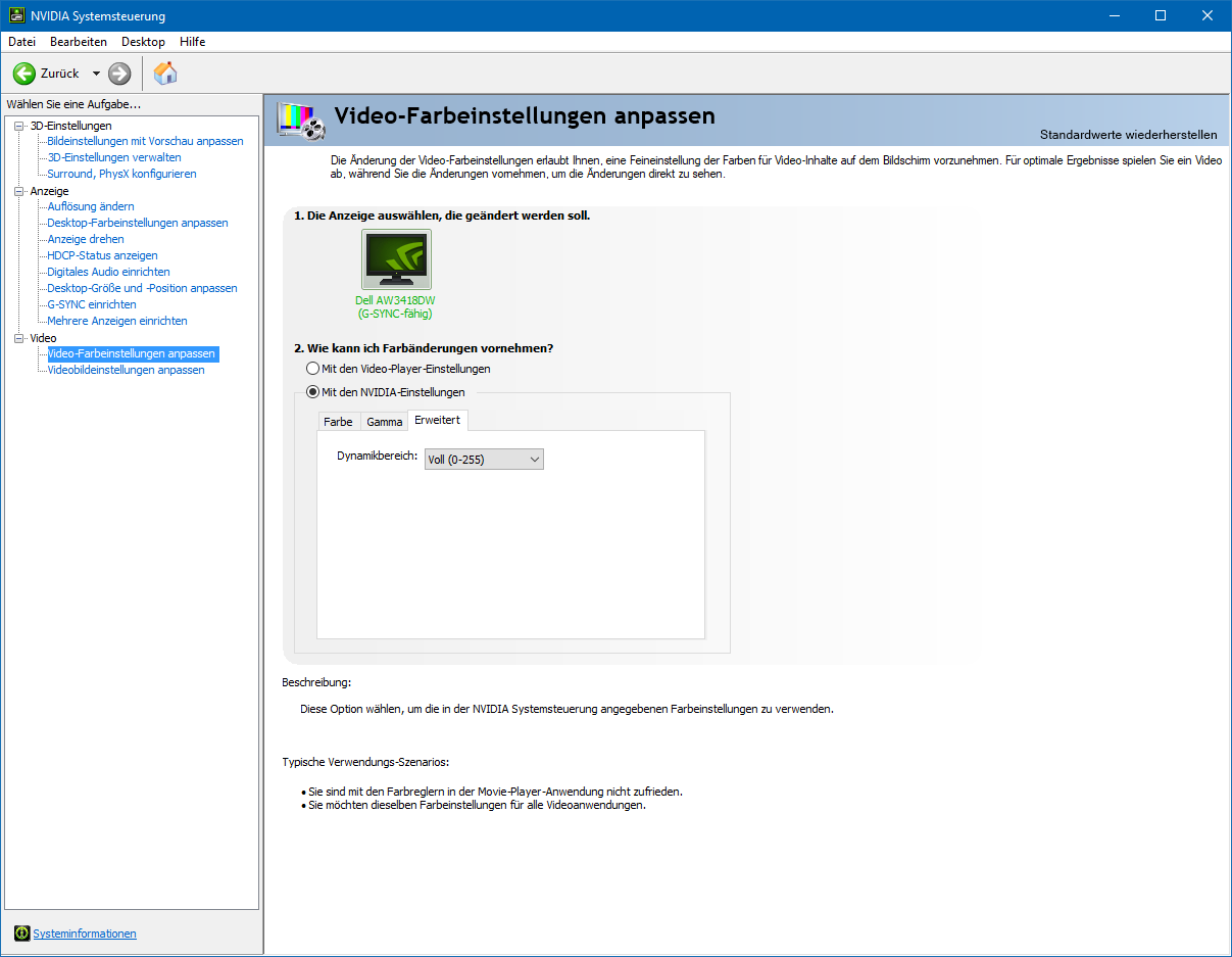 Installiert ist die Treiberversion 23.21.13.8859 vom 7. Dezember. Zuerst hatte ich den Treiber von der beiligenden CD installiert (vom Mai 2017). Bei beiden Versionen das gleiche Problem: Wenn ich mir Videos anschaue (auch Full HD), dann ist das Bild sehr schlecht. Es treten Schatten und Bildrauschen auf, vorallem bei dunklen Stellen. Schatten selbst sehen auch sehr schlecht aus. Das Bild ist bei Videos aber scharf. Bei Webseiten z.B. gibt es gar keine Probleme, aber bei vielen Programmen. Wenn ich z.B. den JDownloader öffne, dann ist da die ganze Schrift ziemlich verschwommen
