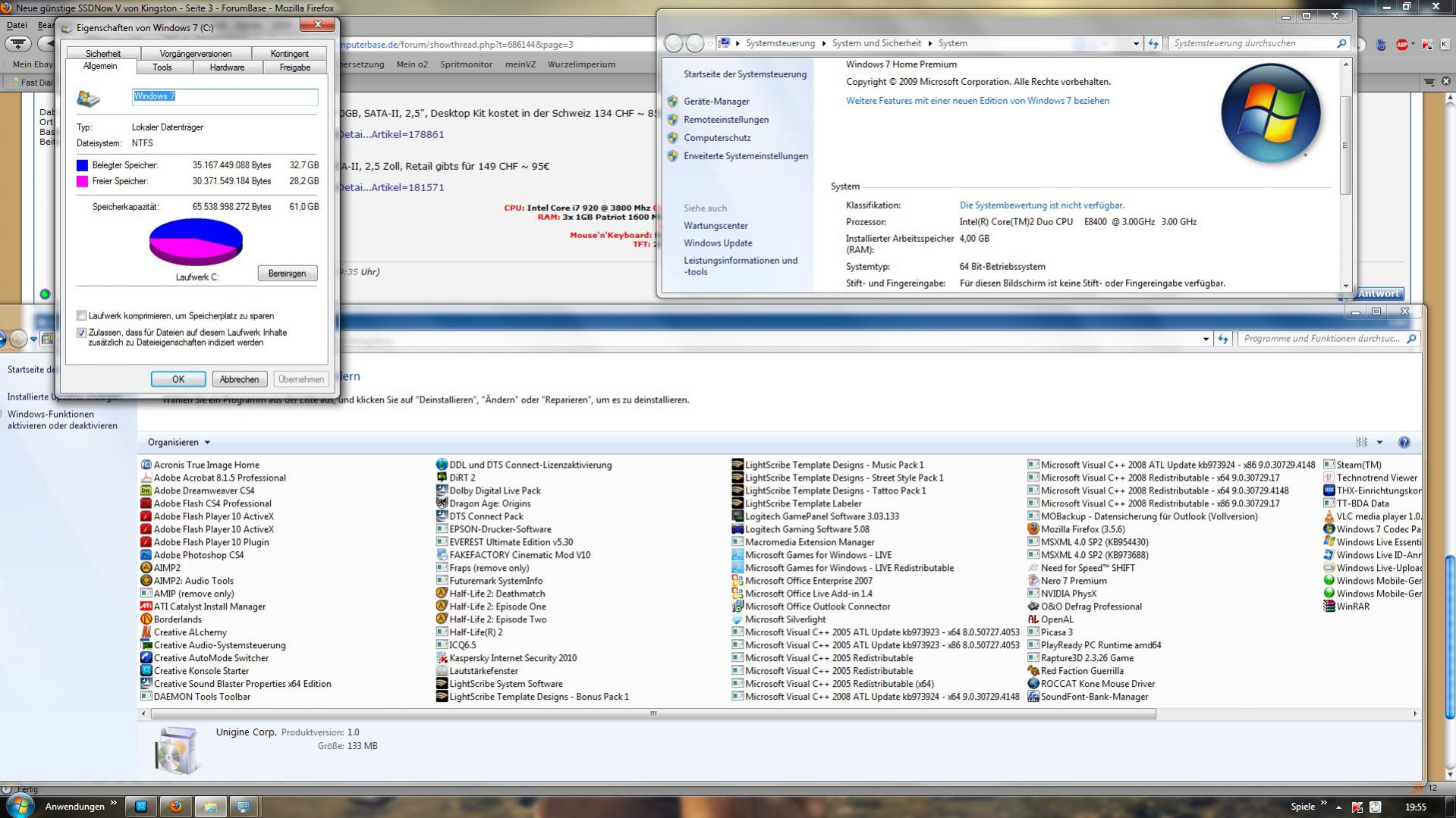 ansonsten habe ich für den Desktop doch lieber eine 60GB Vertex(€155 vor 9 Monaten) genommen, denn trotz aller Reduzierungen bin ich schon mit WIN7/64 nach 2 Monaten bei 22Gb angelangt (Wiederherstellung deaktiviert !).