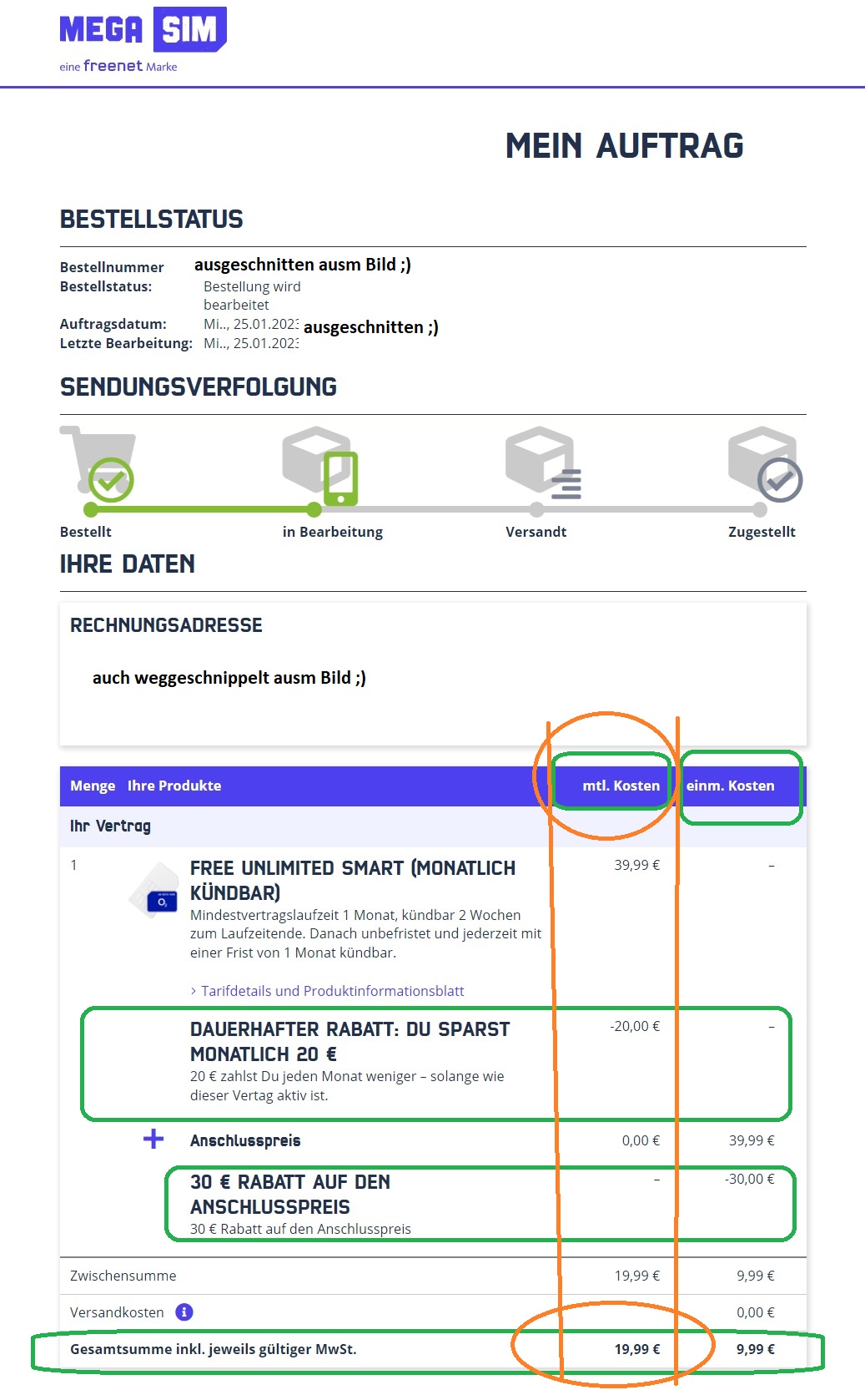 Aber vorhin hab ich testweise einfach mal ne Bestellung losgeschickt und der monatliche Rabatt scheint tatsächlich dauerhaft zu sein, so lange der Vertrag besteht und nicht nur 12, oder 24 Monate.