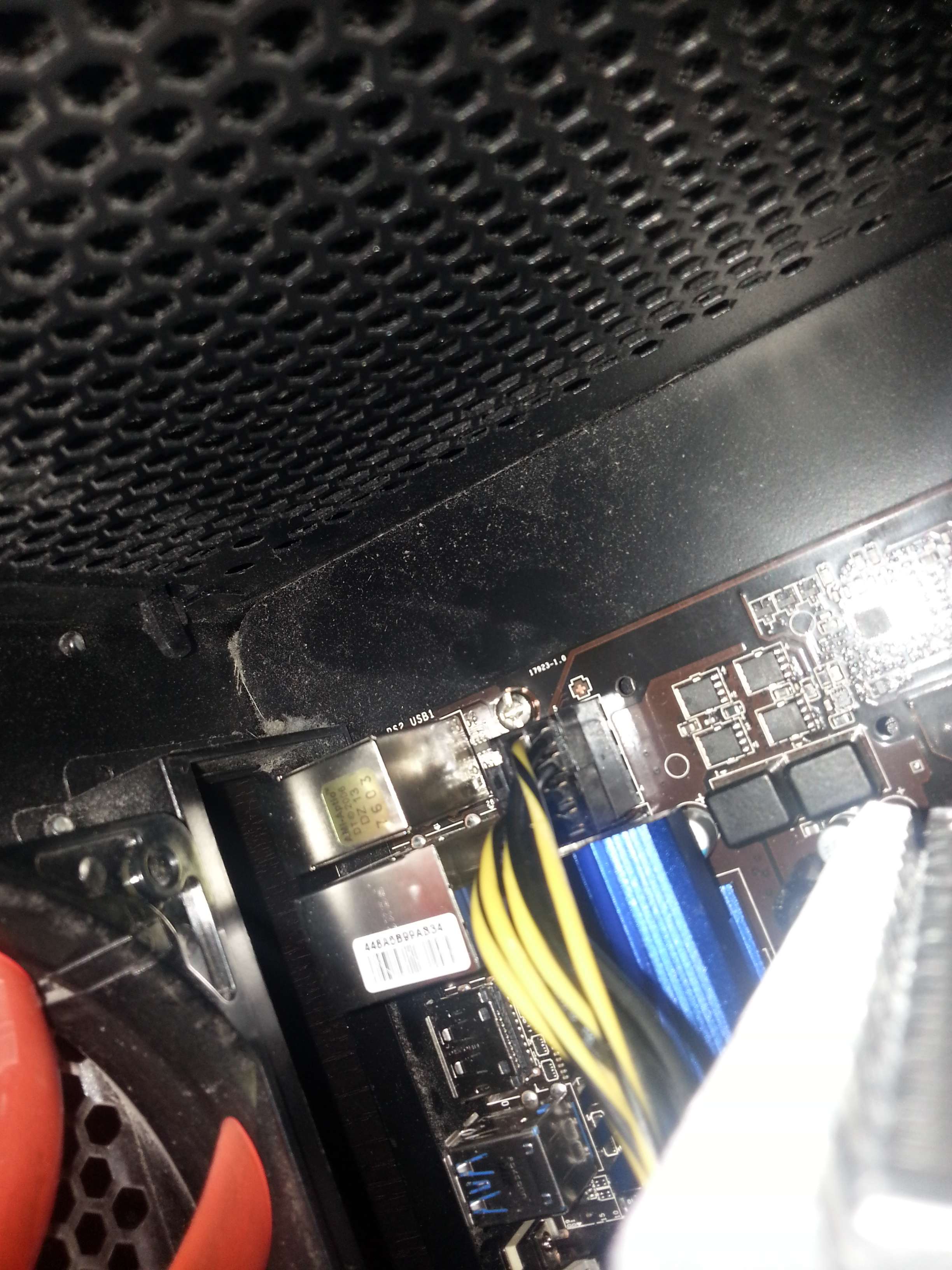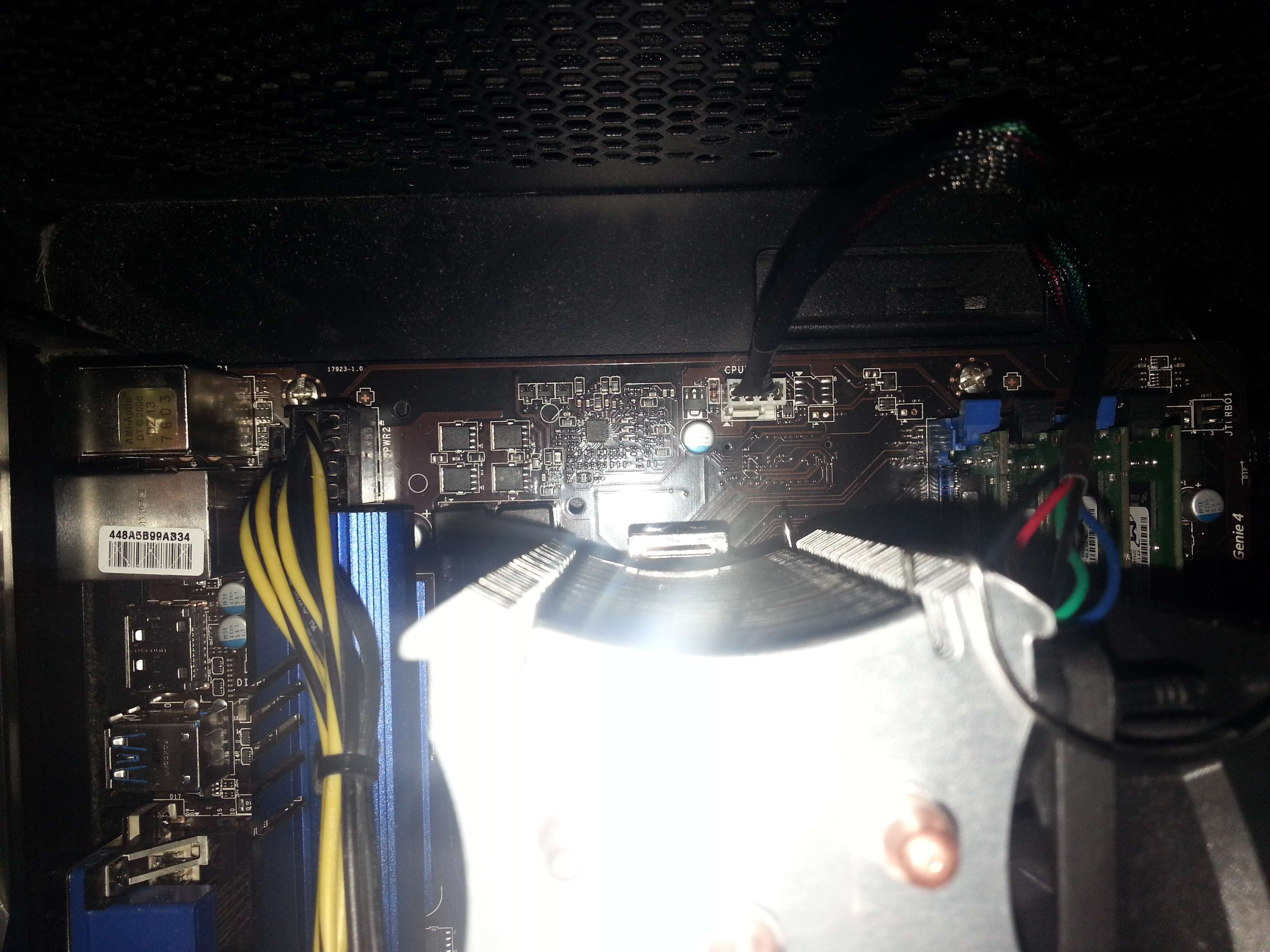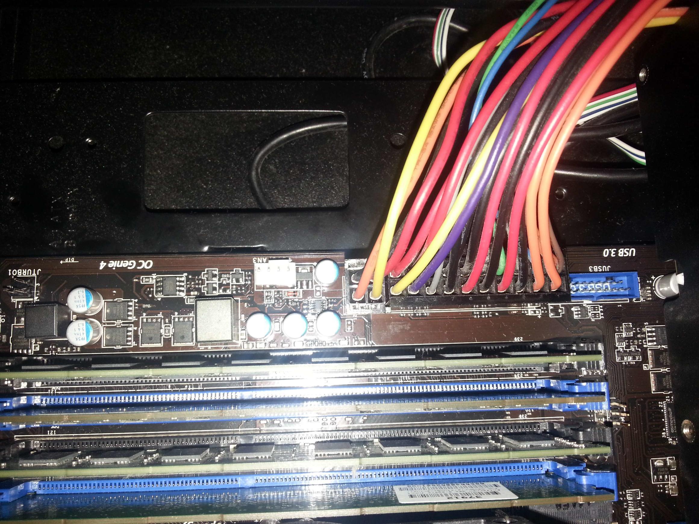 Was fehlte war das Bild auf den Monitoren (habe jeweils einen per HDMI und DVI an der Grafikkarte -> Wechsel bringt nichts und Onboard-Grafik habe ich mit dem Xeon ja auch nicht). Außerdem scheint der Gehäuselüfter keinen Saft zu kriegen. Lediglich wenn ich den PC über die Power-Taste ausmache, leuchtet er kurz auf.