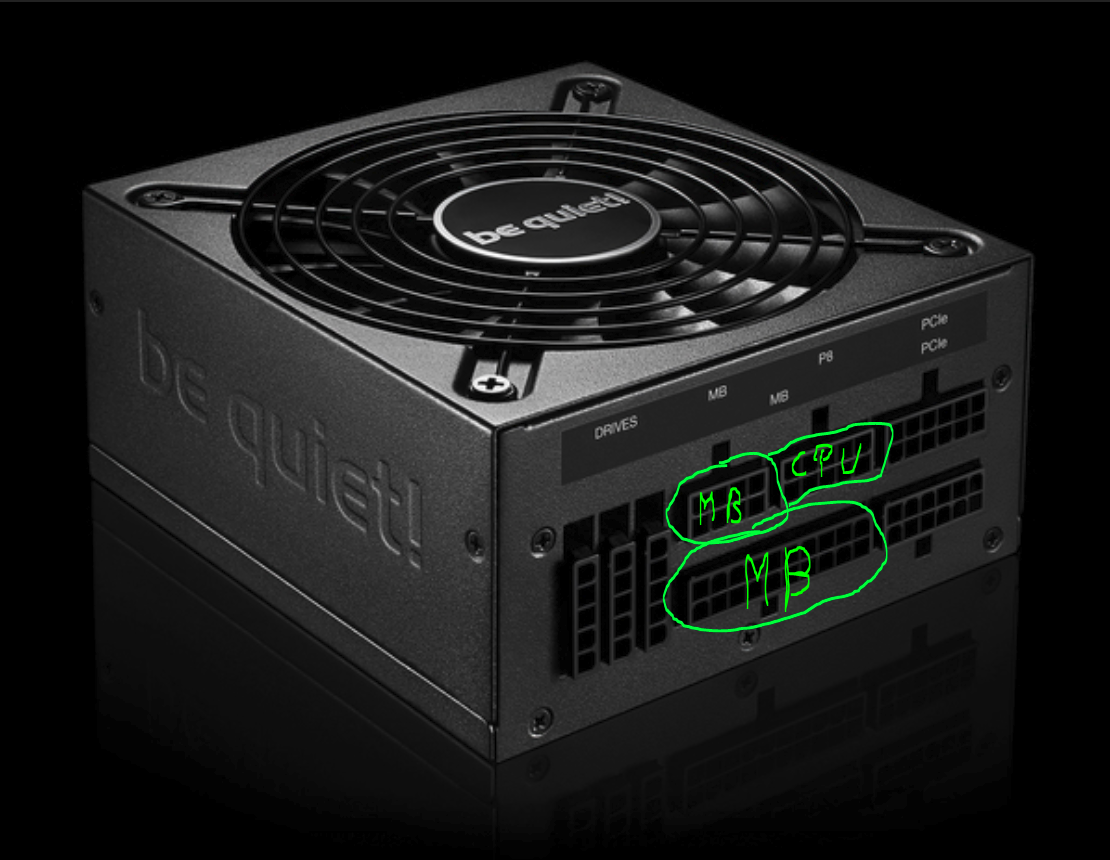 Ich sehe auf dem Bild definitiv keinen Stecker an den relevanten Buchsen am Netzteil (MB oder P8)