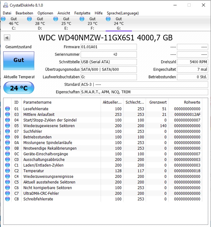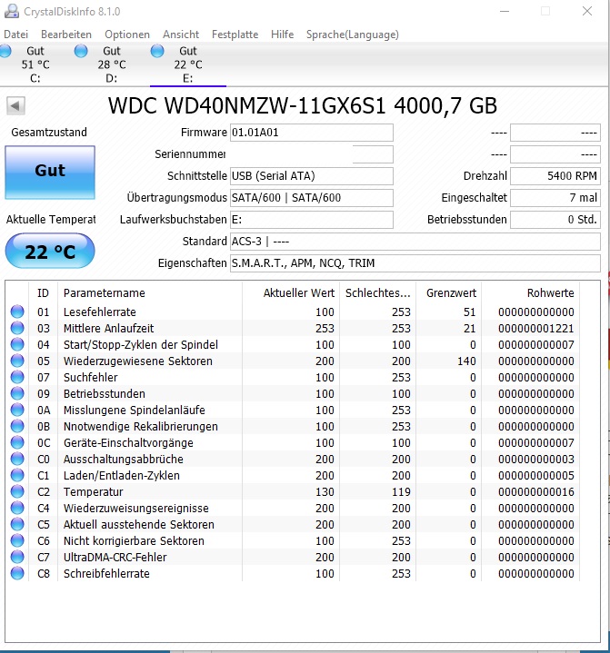 Habe mal alle gescreenshottet. Screenshot 3 und 4 sind die 3. PLatte: Nummer 3: USB 2.0, Nummer 4: USB 3.0