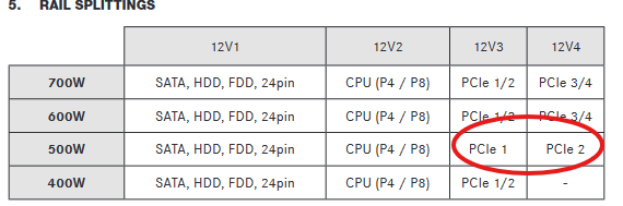 Mein altes 500W Netzteil hatte 2x19A für die Graka.