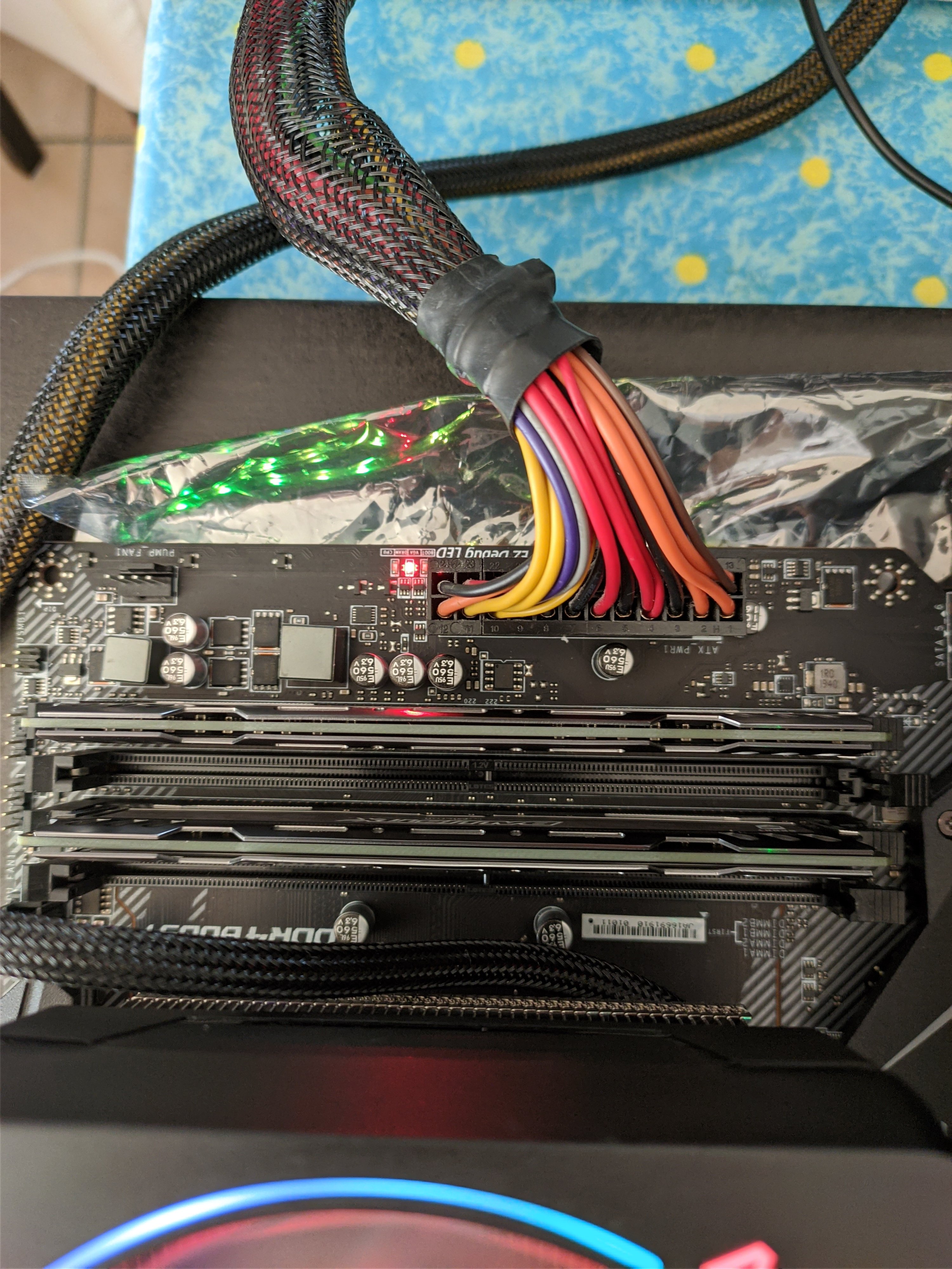 EZ debug LED hatte eigentlich immer bei VGA leuchtet, aber jetzt wenn ich die Arbeitsspeicher abwechselnd in RAM-Platz 1 einsetze leuchtet Arbeitsspeicher A die CPU LED und bei Arbeitsspeicher B leuchtet dann die DRAM-LED, die auch leuchtet wenn beide eingesteckt sind.