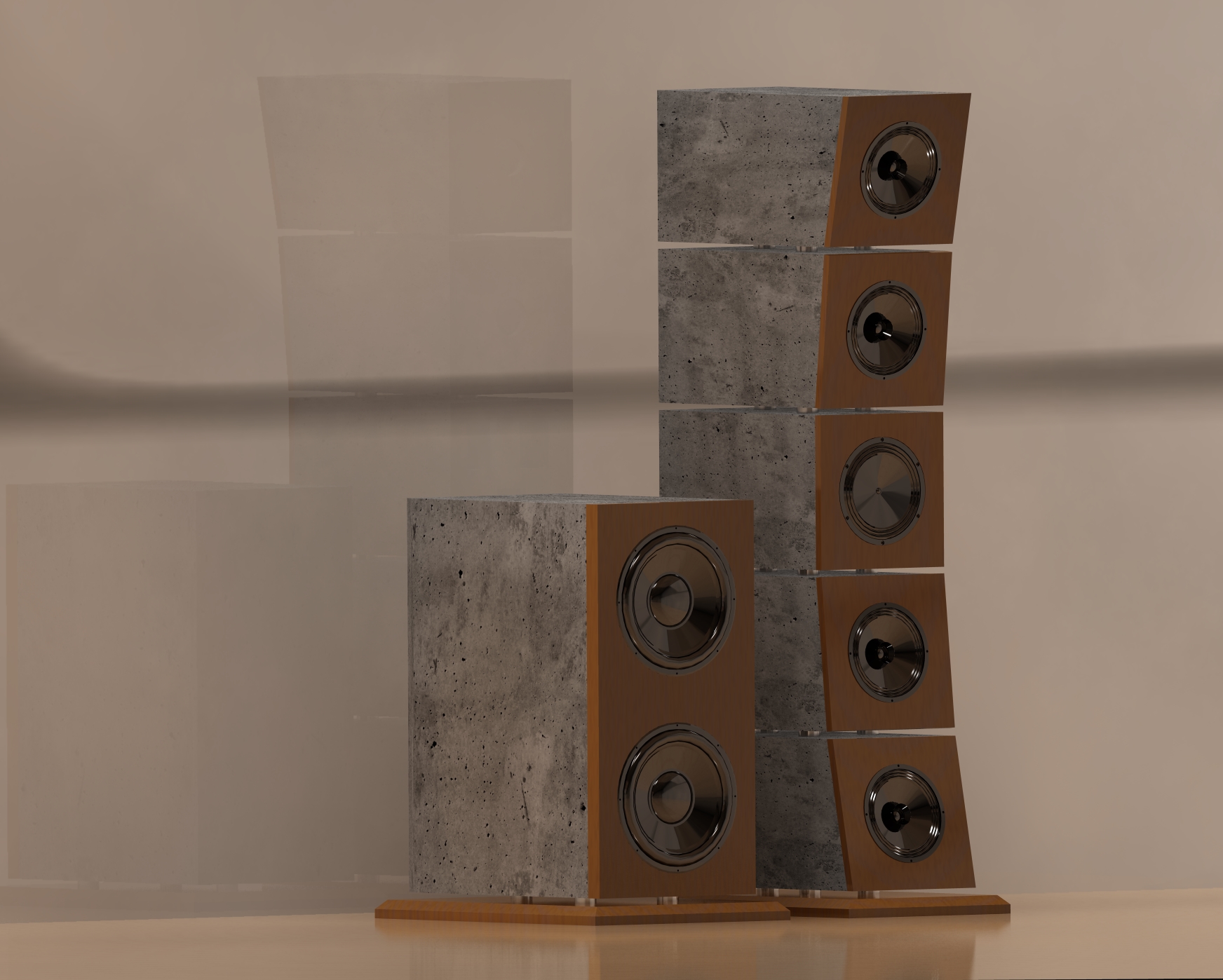 Das "frei im Raum" stellen ist immer so eine Sache. Sinnvollerweise bedeutet das mindestens 1,2 m bei Trennung um 80 Hz oder >2 m bei Wiedergabe bis 40 Hz. In den meisten Fällen dürfte eine wandnahe Aufstellung also wesentlich besser realisierbar sein und entlastet nach Entzerrung Verstärker sowie Chassis.
