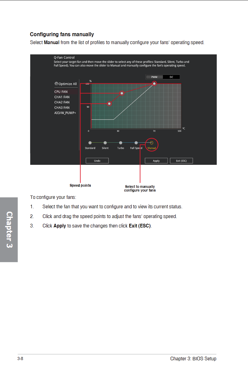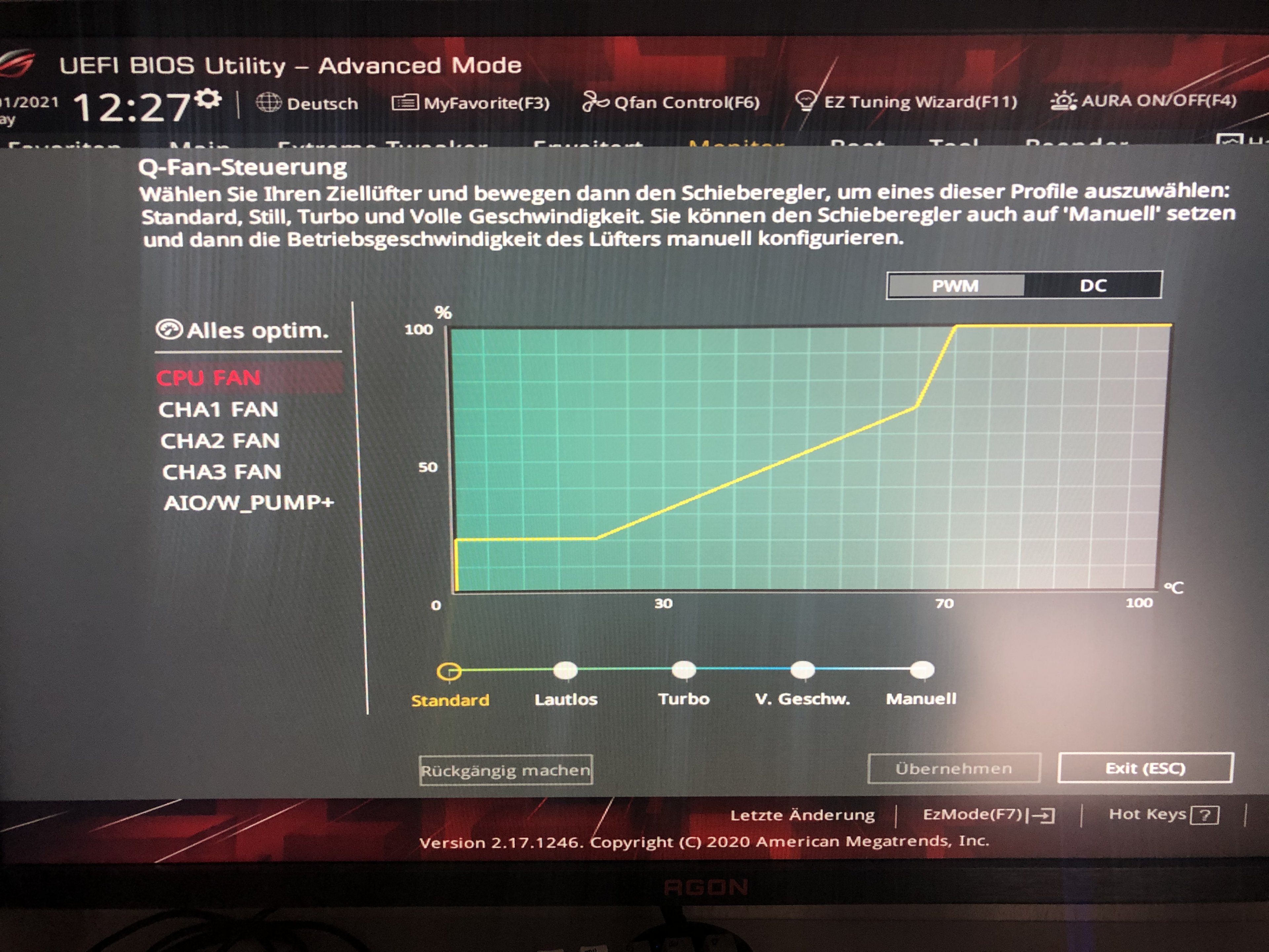 Das Lüfter-Profil (fan profile) sollte auf 'Manuell' stehen.