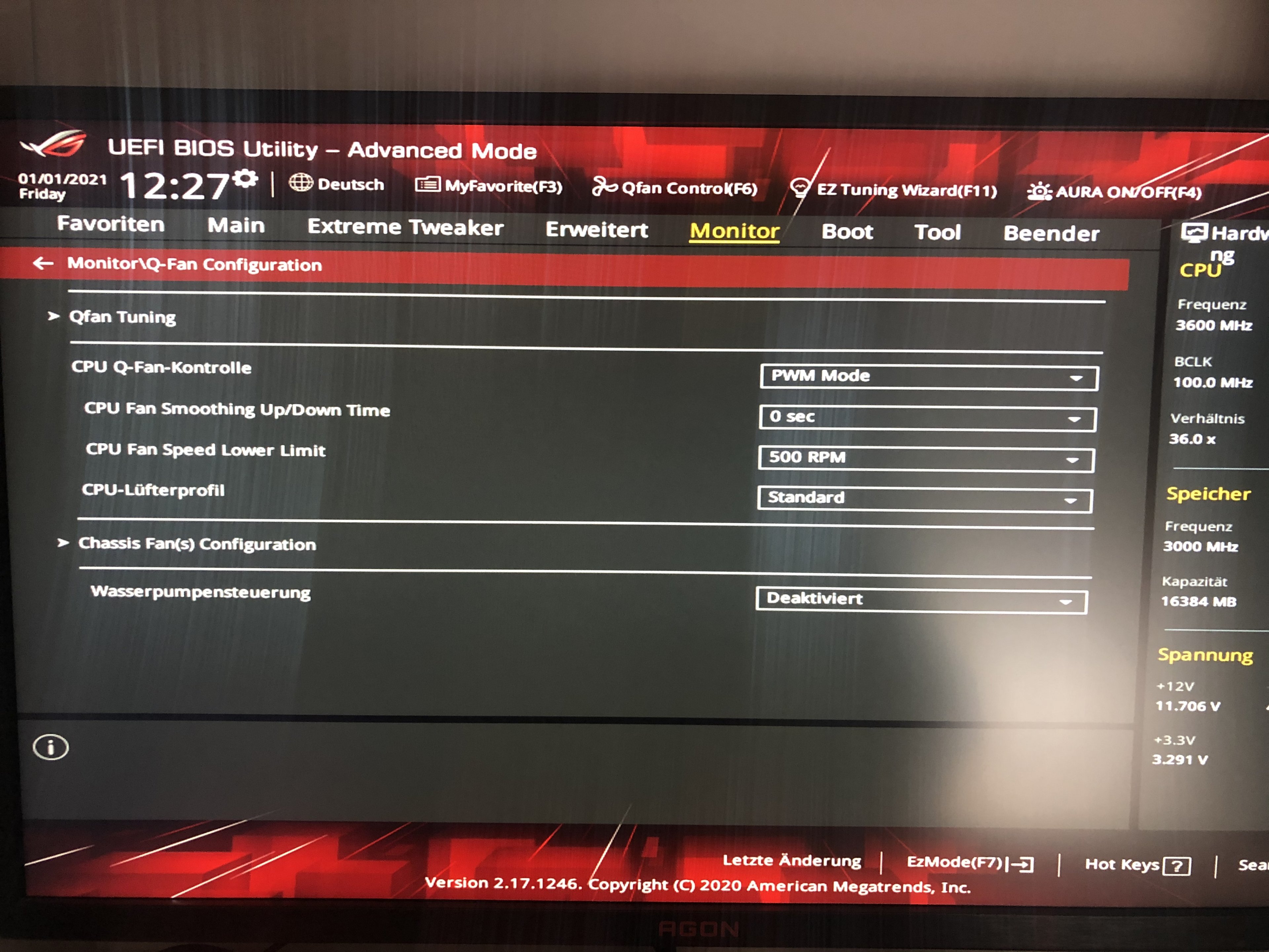 Hab aktuell nur einen weil es mir zu laut wurde. Den Sillent Modus habe ich getestet und es ändert leider nichts XD egal ob 2 oder einer.Novocain schrieb:Hast du jetzt zwei von den Artics ? Oder einen ? Ist etwas unklar. Wenn du weiterhin 2 Lüfter hast probiere mal das Silent Profil aus, oder passe die Kurven enstprechend an. Bei Asus Mainboards war es teilweise so das man erstmal das Desktop Programm starten musste AI irgendwas da musste man einmal die Lüftertesten lassen und erst dann ging die Regelung in Mainboard erst korrekt, war beim CH6 zu mindest früher auch so.