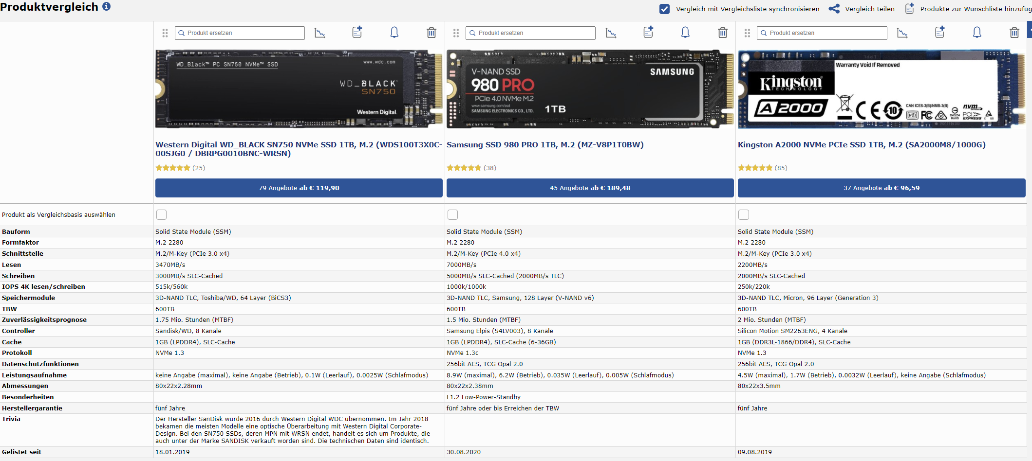 | Western Digital WD_BLACK SN750 NVMe SSD 1TB, M.2 (WDS100T3X0C-00SJG0 / DBRPG0010BNC-WRSN) |