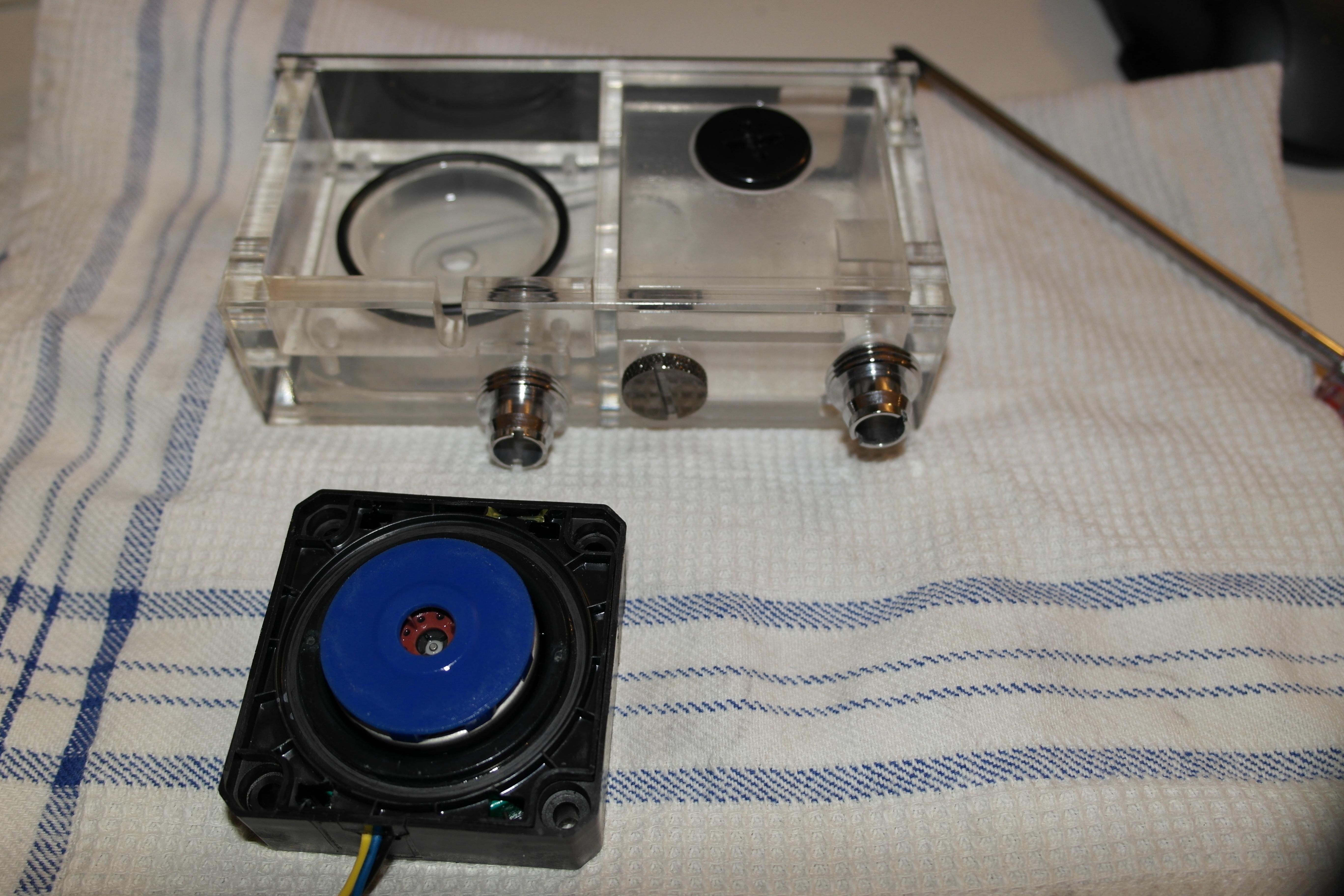 Problem ist aktuell die Lautstärke der Pumpen-Reservoir Kombination. Die Pumpe ist ansich leise, aber bedingt durch den Einbau im 5,25 zoll Schacht überträgt diese Vibrationen ans Gehäuse. Ich habe bereits versucht das ganze durch Einmach-Gummis zu entkoppeln, allerdings mit mäßigem Erfolg. Man hört die Vibrationen doch immernoch recht deutlich.
