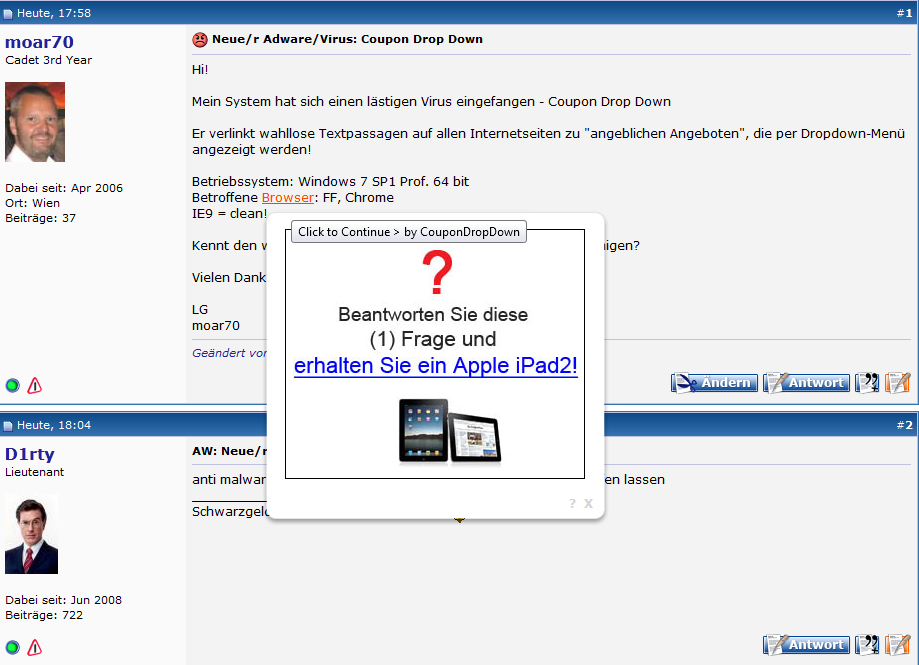 Mein System hat sich einen lästigen Virus eingefangen - Coupon Drop Down