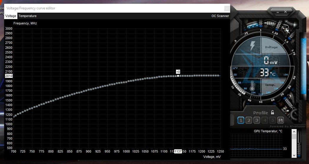 1,087 V mit 1965 mhz, lÀuft ins PL (240 W verbrauch)