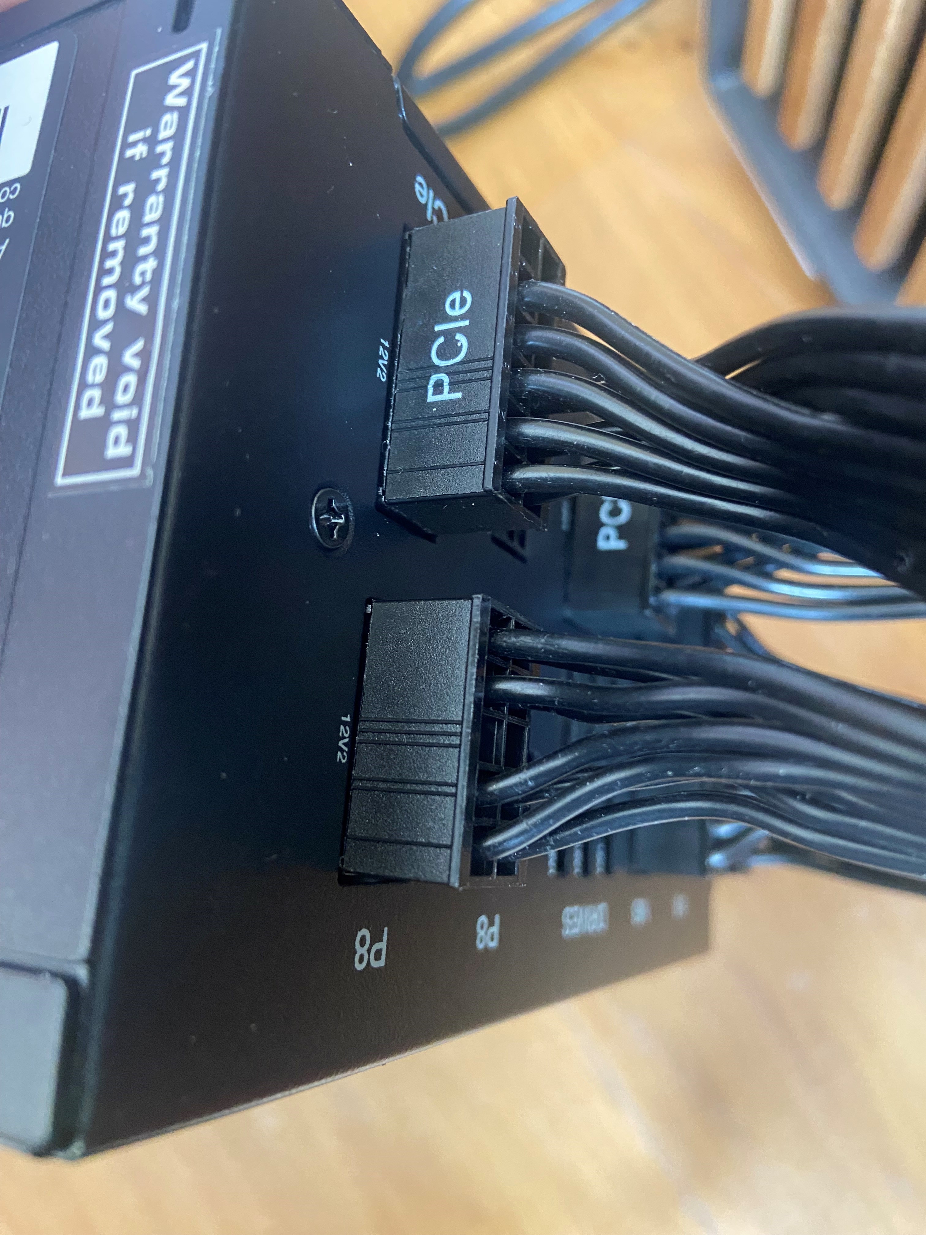 Auf dem Bild der Graka ist der linke PCIe 8Pin nicht korrekt eingesteckt.
