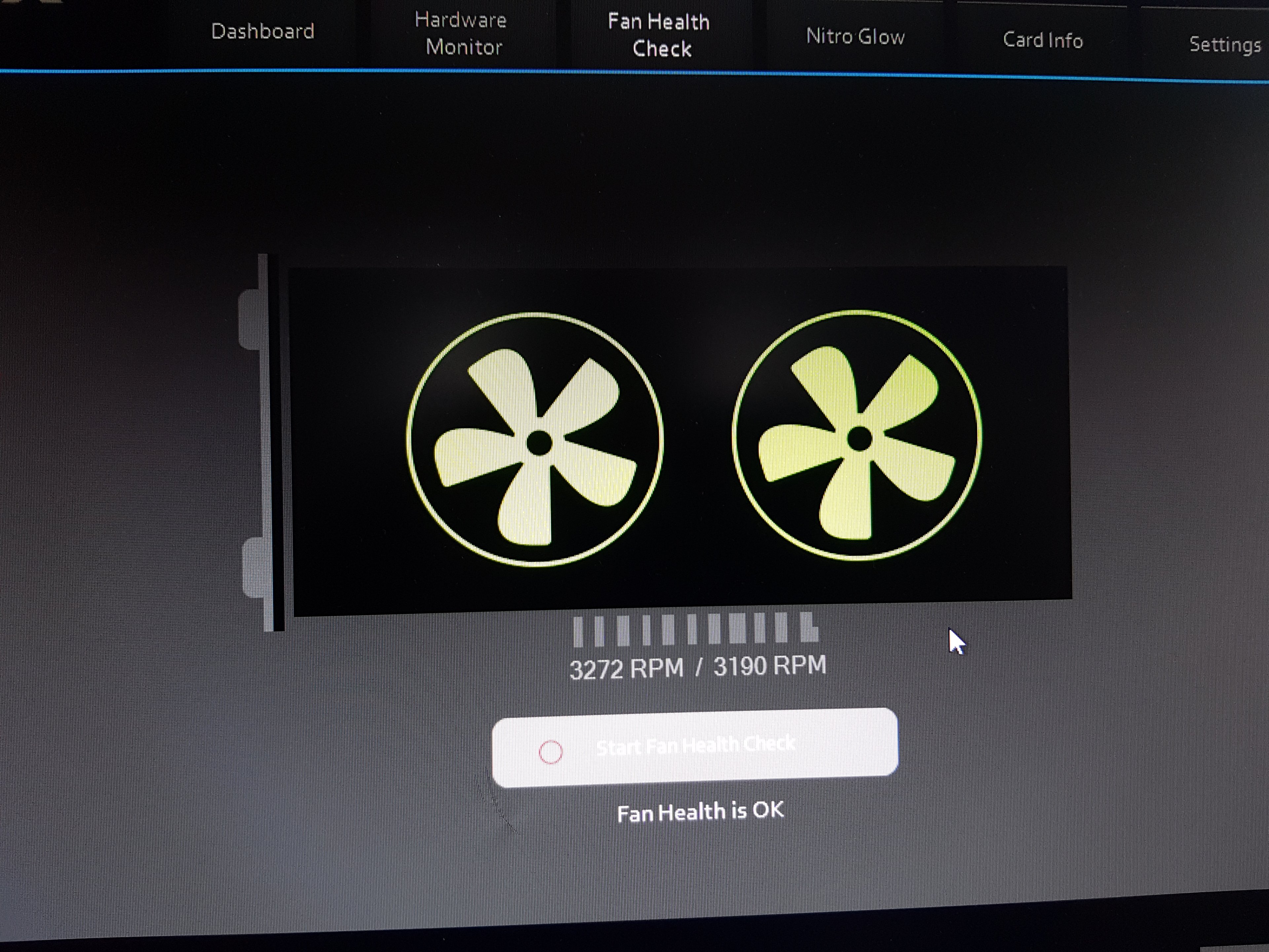 Könnt ihr bei eurer Nitro Karte Geräusche aus dem geschlossenen Gehäuse hören, wenn ihr die Lüfter auf 20% Drehzahl stellt?