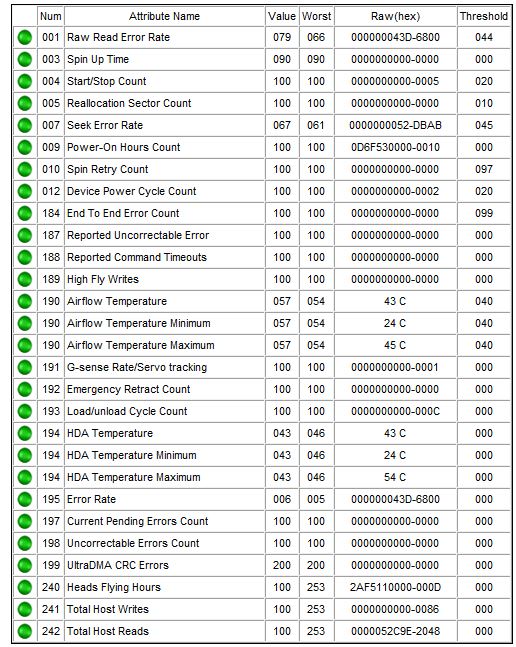 Wie man sieht, muss auch erst eine bestimmten Anzahl von Vorgängen erfolgt sein, bevor der Aktuelle Wert überhaupt errechnet wird, ist diese Anzahl erreicht fällt er und steigt dann wieder, sofern es keine oder wenigstens nicht zu häufig Fehler gibt. Da der Rohwert bei diesem Tool ausgeteilt angezeigt wird, kann man jetzt auch nicht sagen was genau die Stellen für die Anzeige der Fehler und welches für die Anzeige der Vorgänge ist. Vermutlich sind hier aber die sechs 000000 die Stellen für die Zähler der Fehler und die anderen für die Vorgänger und es gibt daher weder Lese- noch Suchfehler. 0x52DBAB = 5430187 Suchvorgänge würden nach der Formel bei keinem oder einem Fehler ja auch 67 ergeben, was genau der Aktuelle Wert (Value) ist. Es gibt also keinen Grund zur Sorge.