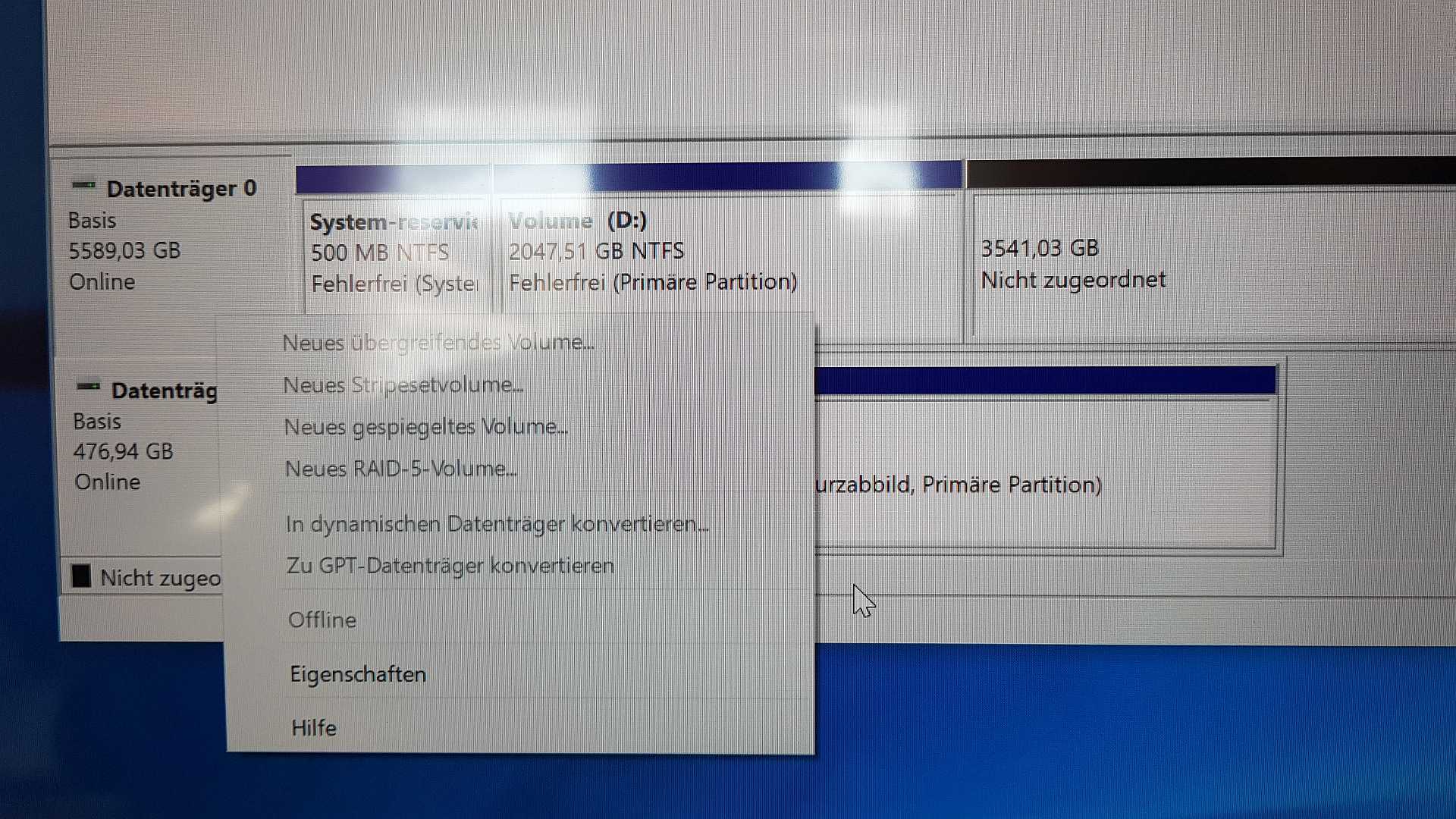 Als ich nun Windows aufgespielt habe, und zu dem Punkt kam, wo ich die SkyHawk partitionieren kann ( ich wollte 2x2TB und einmal den Rest partitionieren ), konnte ich nur die ersten 2TB partitionieren, und auf den Rest von ca. 3,5 TB kann ich nicht mehr zugreifen.