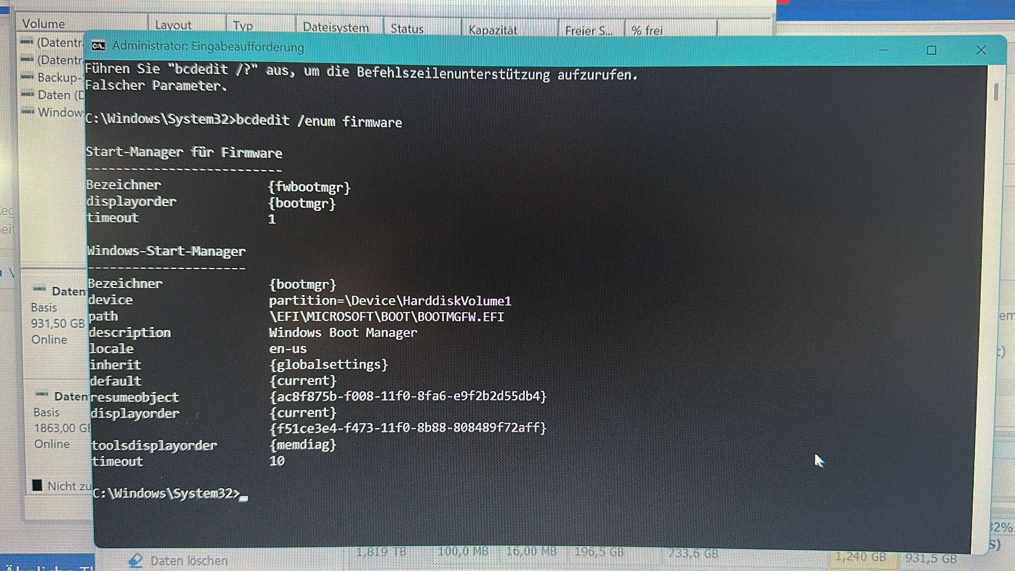 Habe noch einen Befehl den grok mir gegeben hat ins cmd eingegeben und da kam das Ergebnis. Also von Macrium keine Sicht.