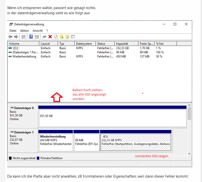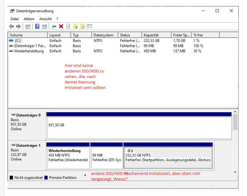 Andere SSD/HDD die er in seinem PC hat, und die nach dir ja initialisiert sein sollten, werden oben aber nicht angezeigt. Wie kannst du das erklären?