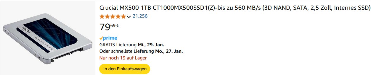 1. Neue "Crucial 1 TB SSD" in externes SSD-Leergehäuse gesteckt, angeschlossen.