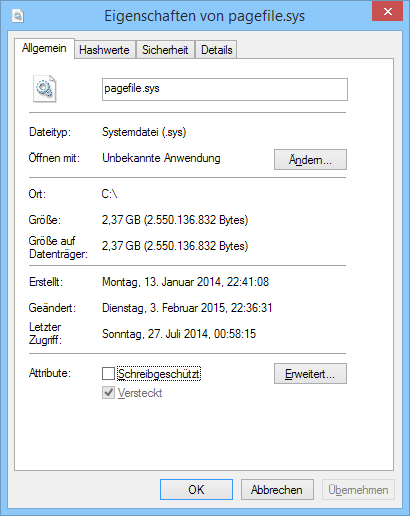 Eben nicht, hier fängt Windows 8.1 mit einer Auslagerungsdateigröße von 1GB bei vorhandenen/ eingesetzten 16GB RAM an.