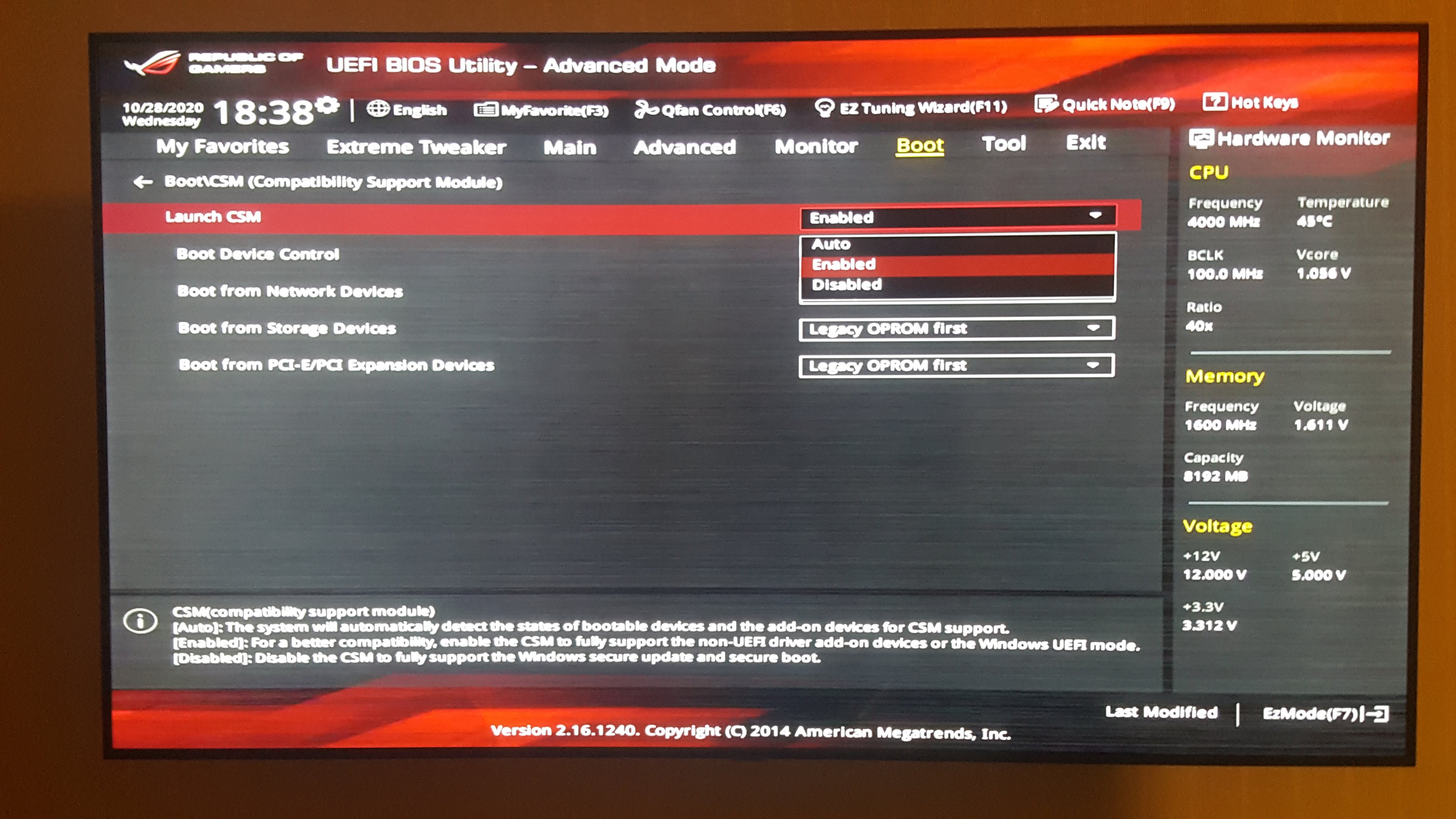 BIOS Update und umstellen von Uefi auf other OS hat leider nicht geholfen.