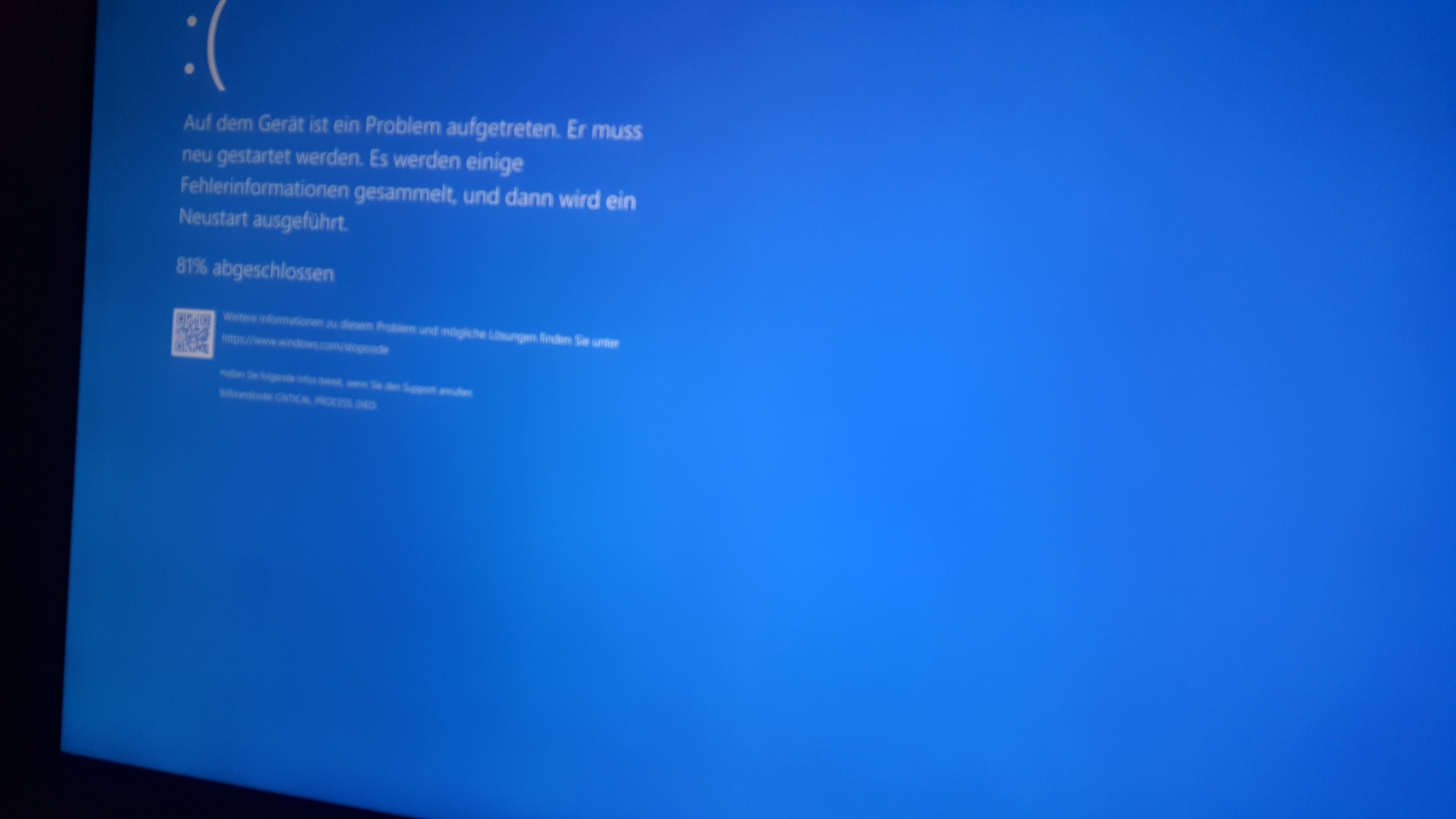 Ein paar Stunden nach der Installation kam dann schon der Bluescreen.