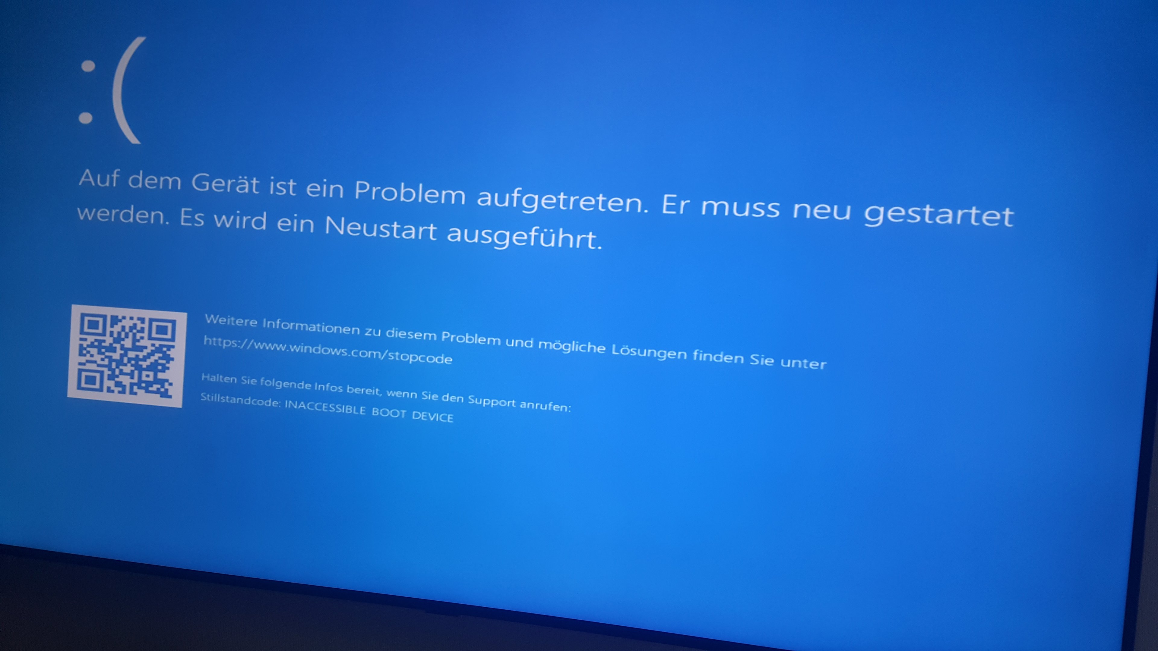 Danach dann wieder im Rechner eingebaut wird sie erkannt und bevor Windows dann komplett startet kommt wieder ein Bluescreen.