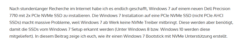 Dann lies mal hier Windows 7 auf NVMe SSD