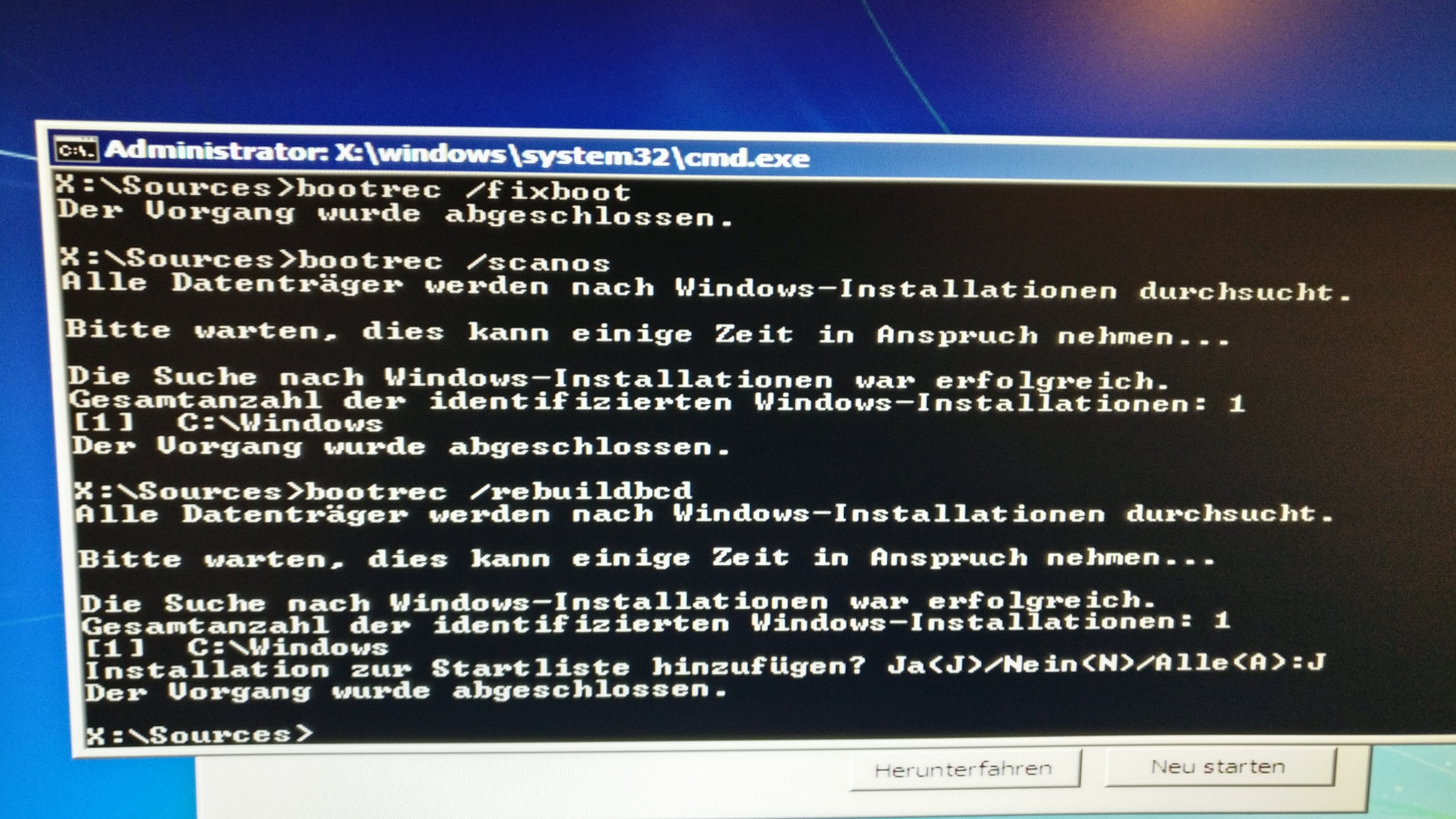 Neue SSD's und Windows7-Bootschleife