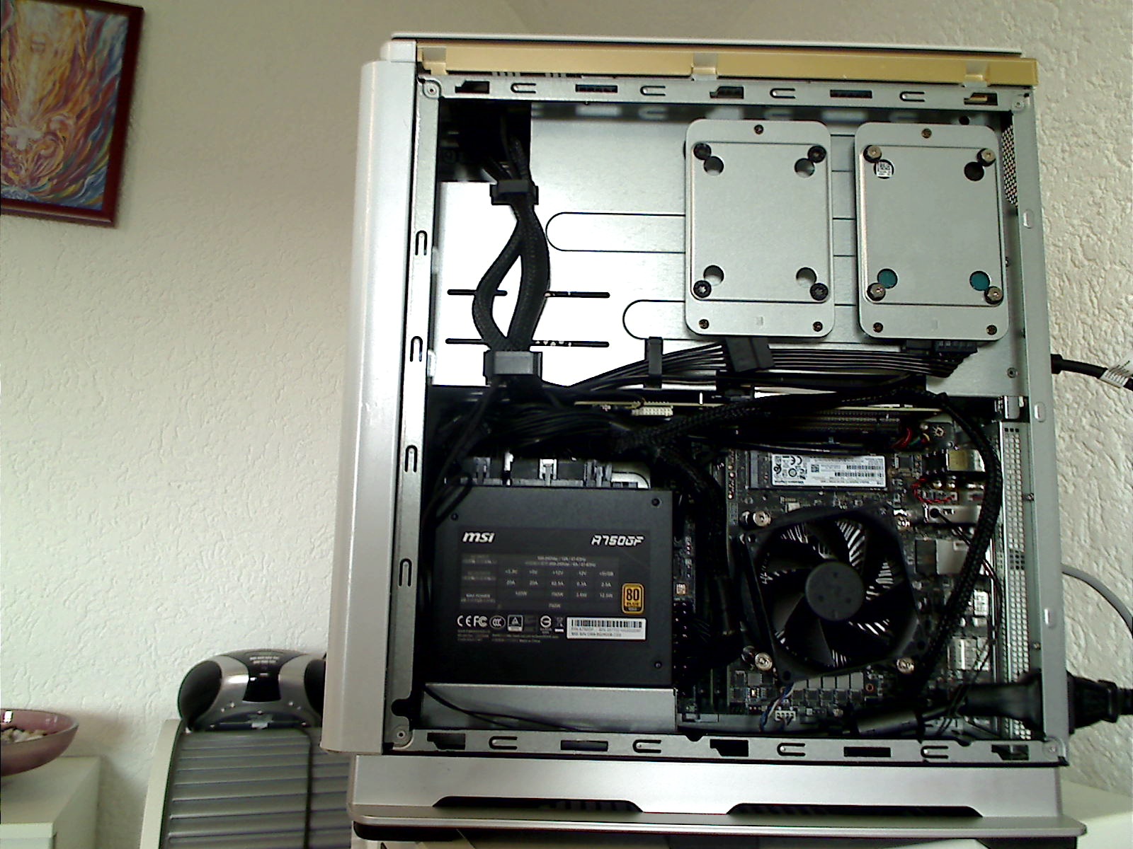 Eine andere Idee wäre nun aber, oben im PC, bei den beiden Festplatten, neben der HD noch eine normale SSD zu ergänzen und diese zur Systemplatte zu machen. Für zukünftige Zwecke könnte eine weitere SSD sogar Sinn machen.