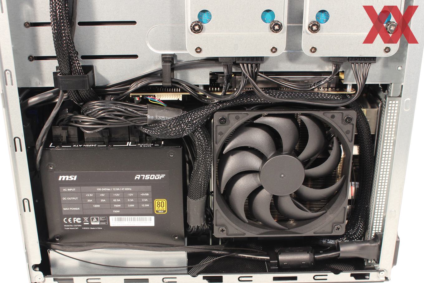 Und wenn man sich die Bildergalerie anschaut gibt es ab Werk sogar einen großen topblower mit mind 120mm Lüfter.