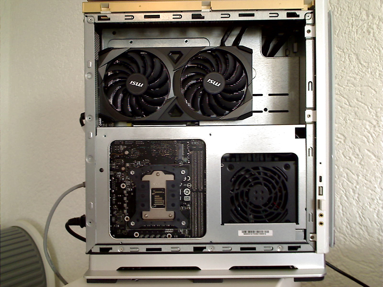 Und die bekommt dennoch laut mehreren Tests eine gute Kühlung hin, mittels eines größeren, guten CPU-Kühlers und eines zusätzlichen 8x1,5cm-Lüfters im Boden unter der CPU.