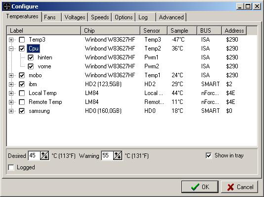 habe bei mir jedoch auch 2 temperaturangaben, mit denen ich gar nichts anfangen kann . die hab ich dann einfach ignoriert ( einmal -47°C , einmal 11°C ... beides eher unrealistische angaben in einem otto normal pc )