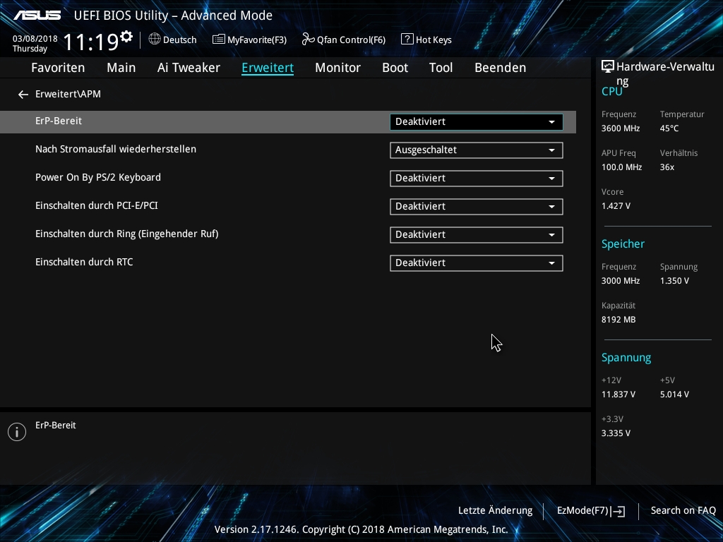 Danach hab ich den PC angemacht und 1-2 Sek. später ging er wieder aus, bevor ich irgendetwas sehen konnte. Danach hat er sich nach ein paar Sekunden von alleine (!) wieder angeschaltet, ist normal hochgefahren und funktioniert problemlos, soweit ich das beurteilen kann. Auch die WLAN-Karte wird (nach Treiberinstallation) normal erkannt.