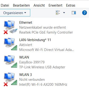 Kannst du auch mal am PC auf Einstellungen -> Netzwerk und Internet -> Adapteroptionen ändern einen screenshot machen?