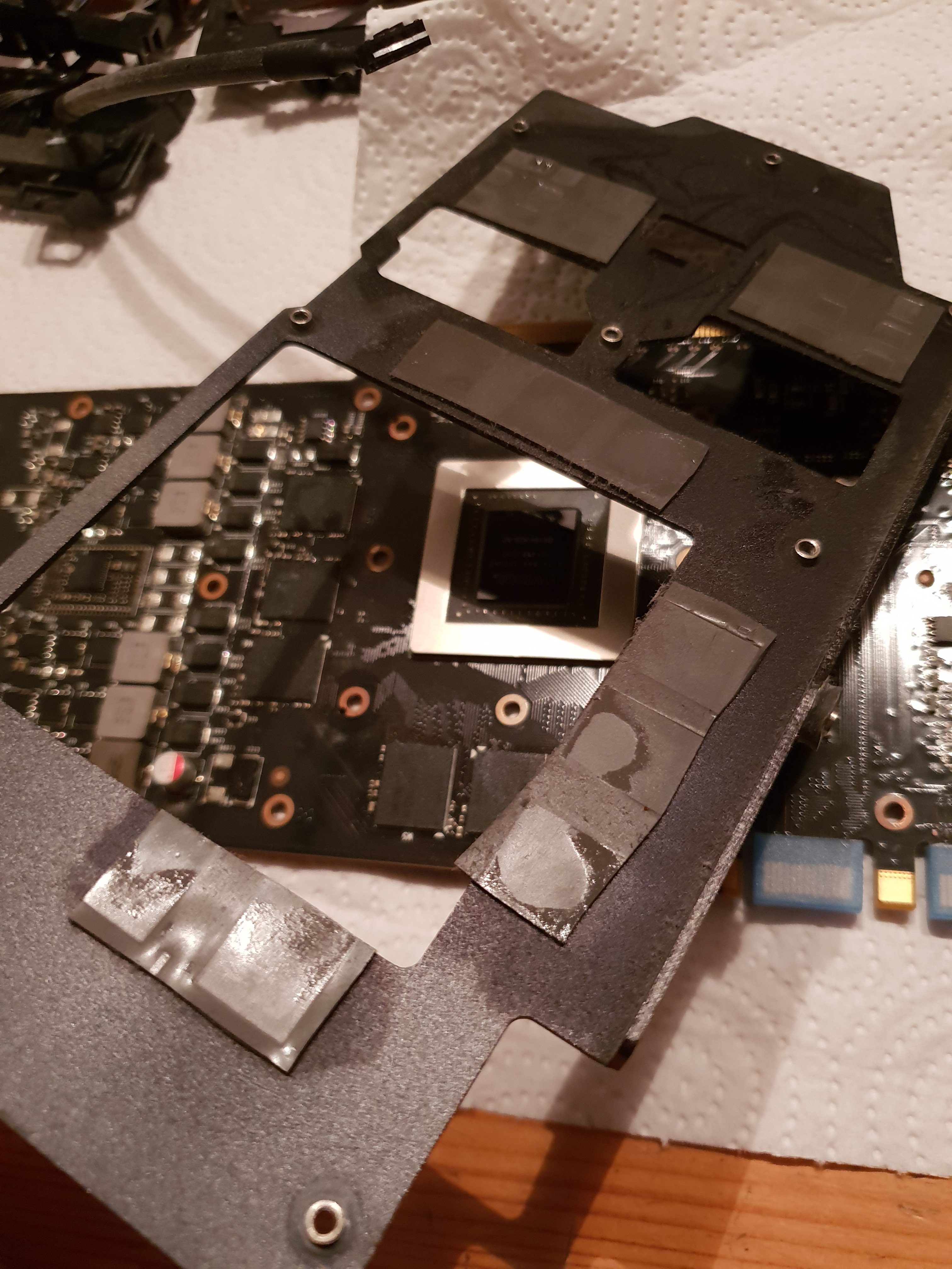 ich habe nun das erste Mal meine Grafikkarte auseinandergebaut (Lüfter und Kühlkörper ab) um sauber zu machen und auch die Wärmeleitpaste zu erneuern. Die die Werksseitig drauf war, ist schon eingetrocknet und hart wie Plastik. zudem war anscheinend auch zu viel drauf, weil an den seiten echt viel übergelaufen ist.