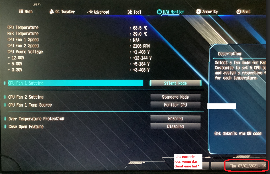 Ich habe schon eine Antwort der Firma bzgl. Office, es ist ein Versuch wert. Muss aber vorher Win 11 installieren. Ich zögere gerade da der PC im Bios so heiß wird. Ich sehe gerade dass das Kabel vom USB-Kit quer über das Gitter der Frontabdeckung gerutscht ist (wirklich kein Spaß mit dem dicken langen Kabel in dem Mini-Gehäuse). Ich versuche es zuerst mal umzubiegen oder das Kit auszubauen und schaue ob dies Einfluss auf die Temperatur hat…