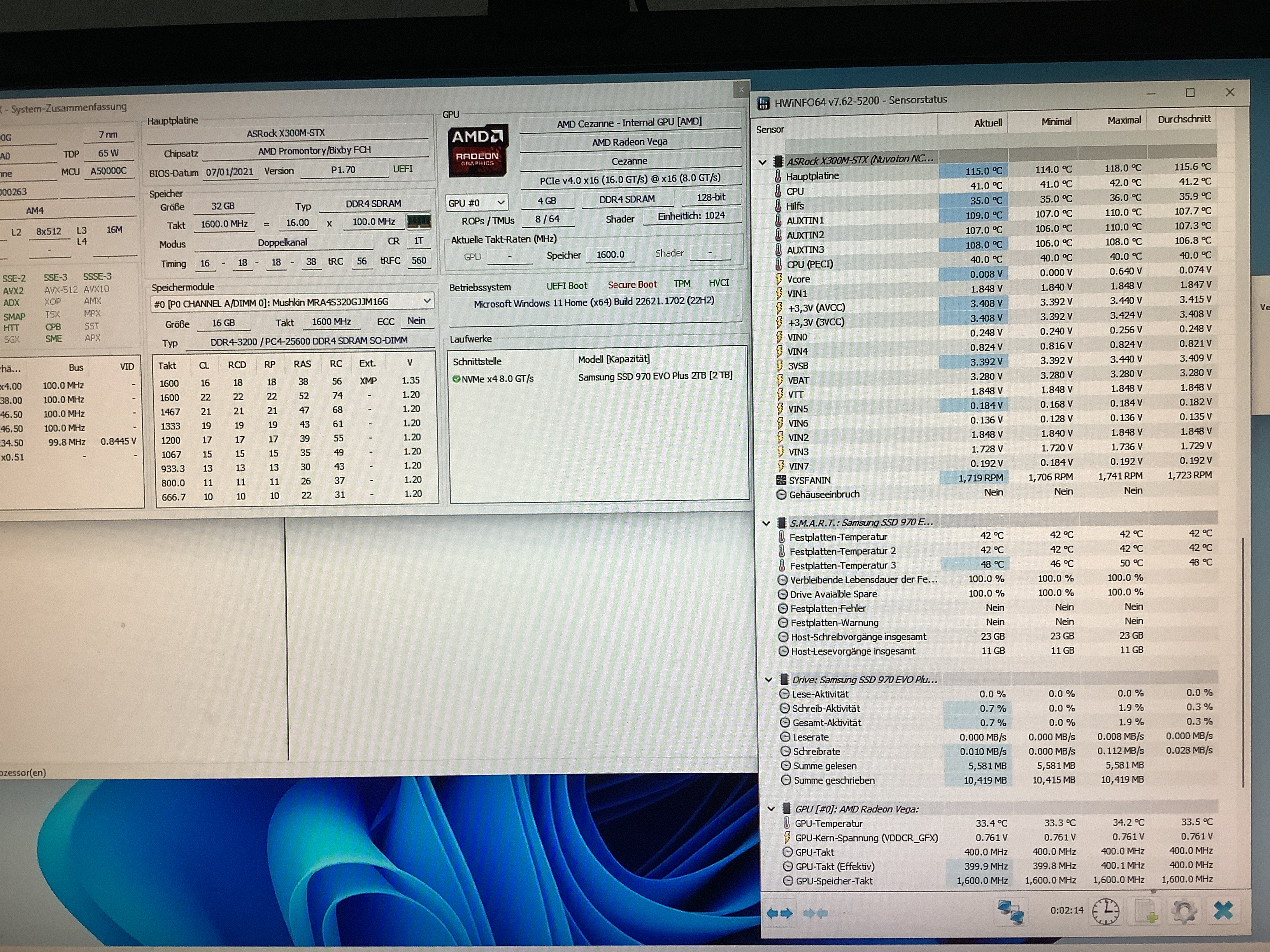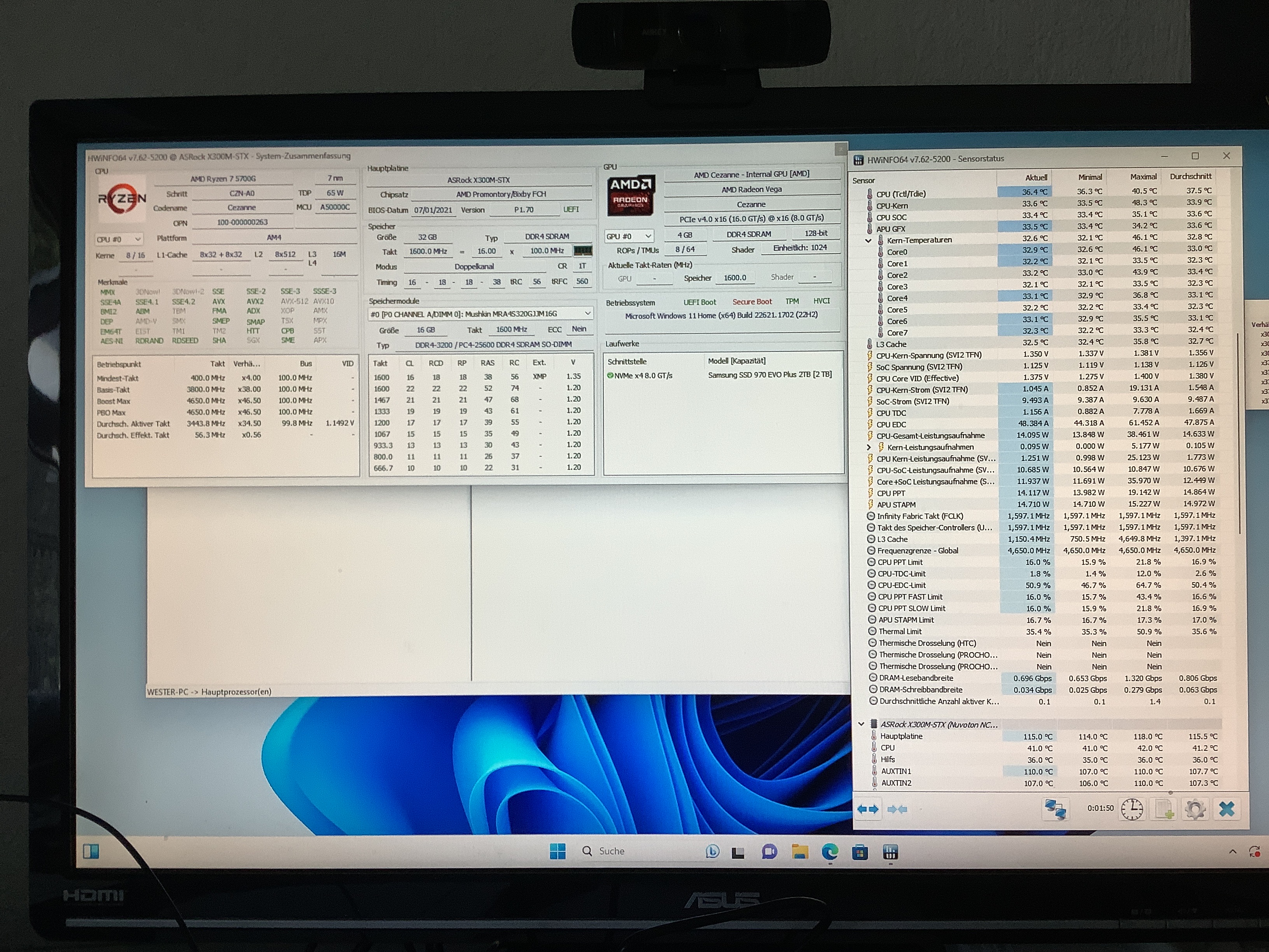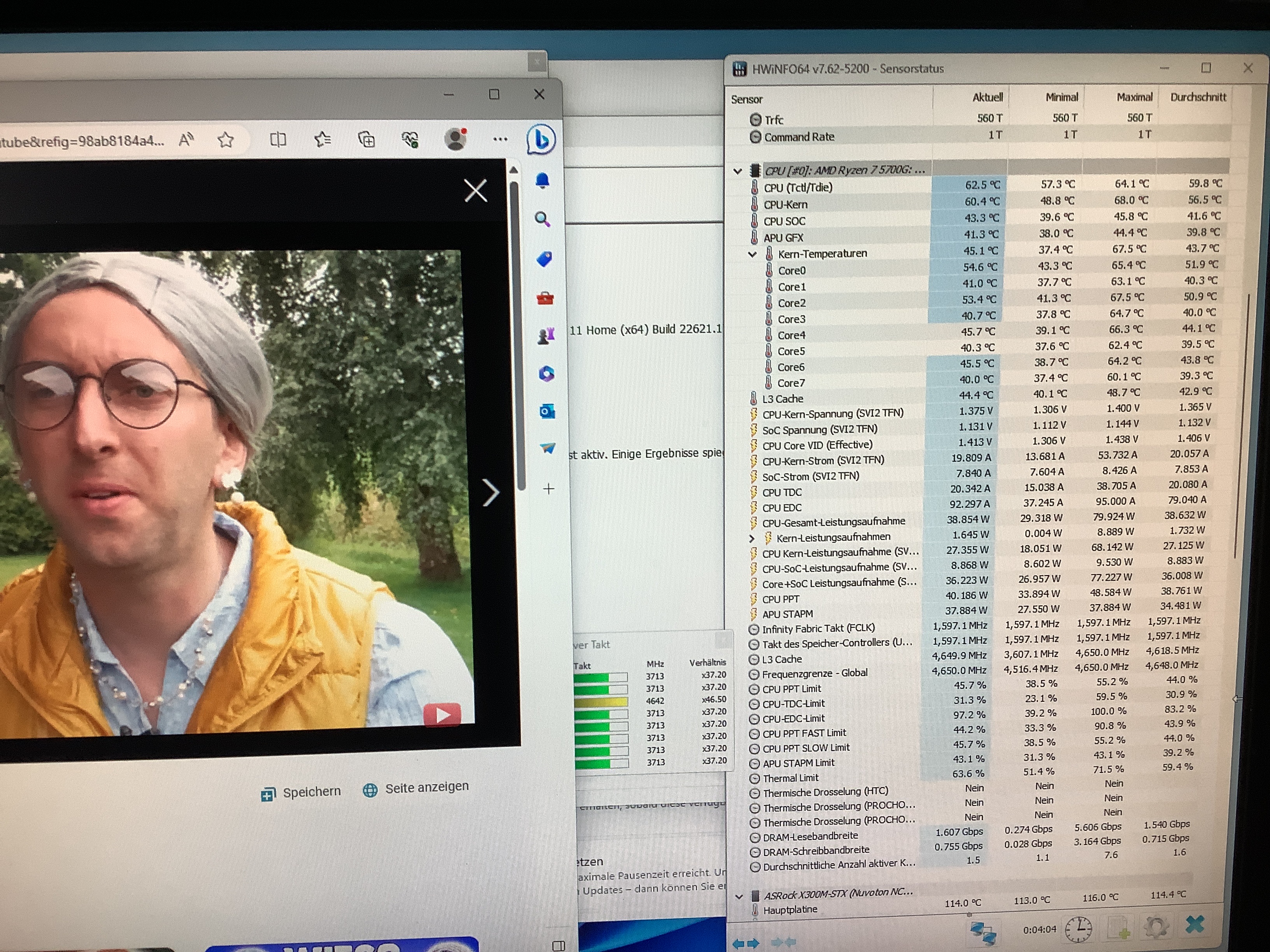 Habe spaßeshalber mal HWinfo installiert um die Temperatur zu kontrollieren. Ohne Last (d.h. Win 11 und HWinfo läuft und ich mache nix):