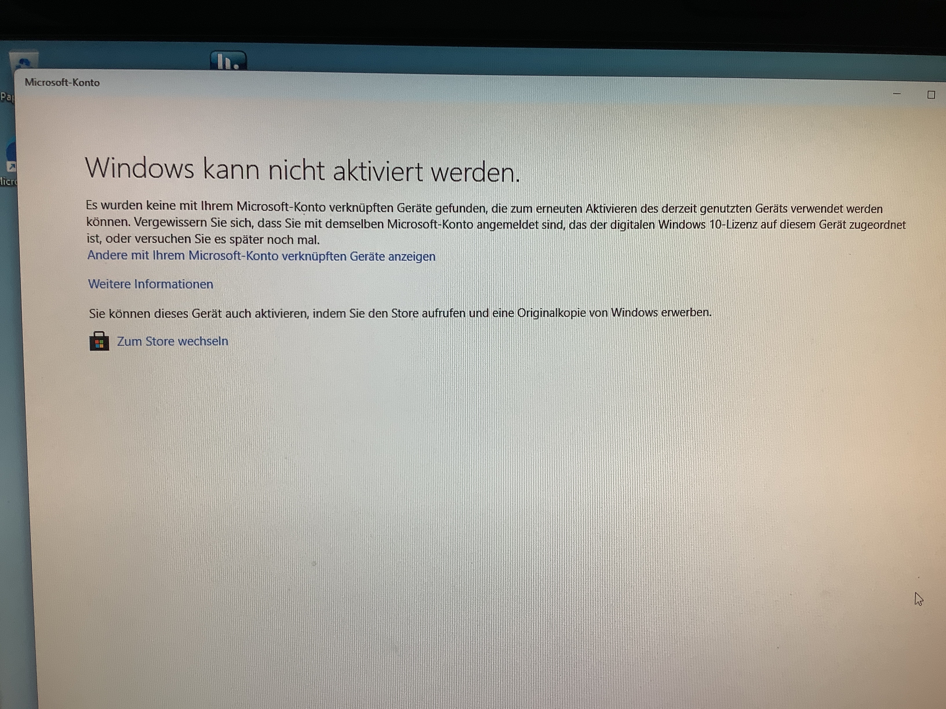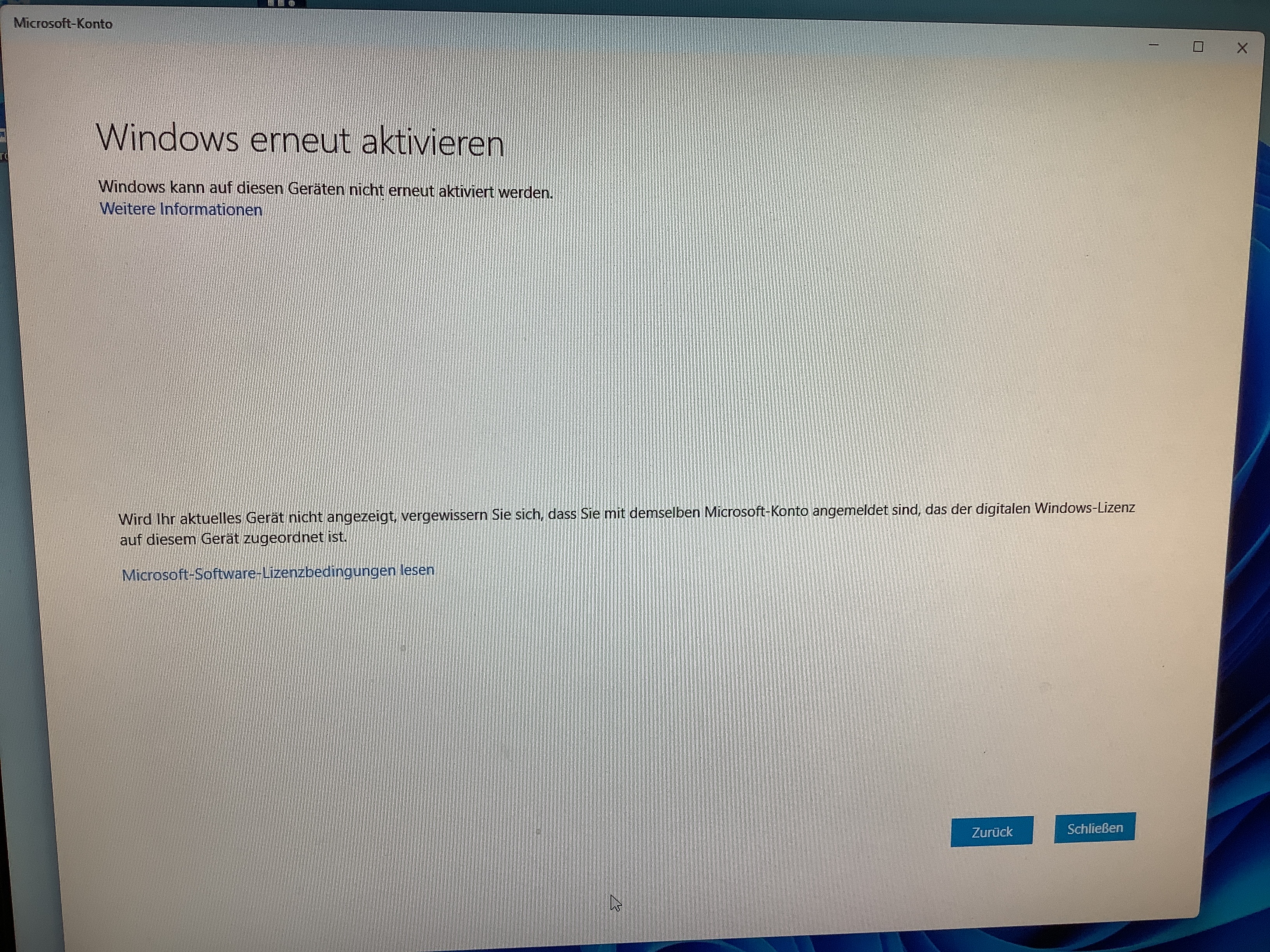 Windows kann auf diesem Gerät nicht erneut aktiviert werden.