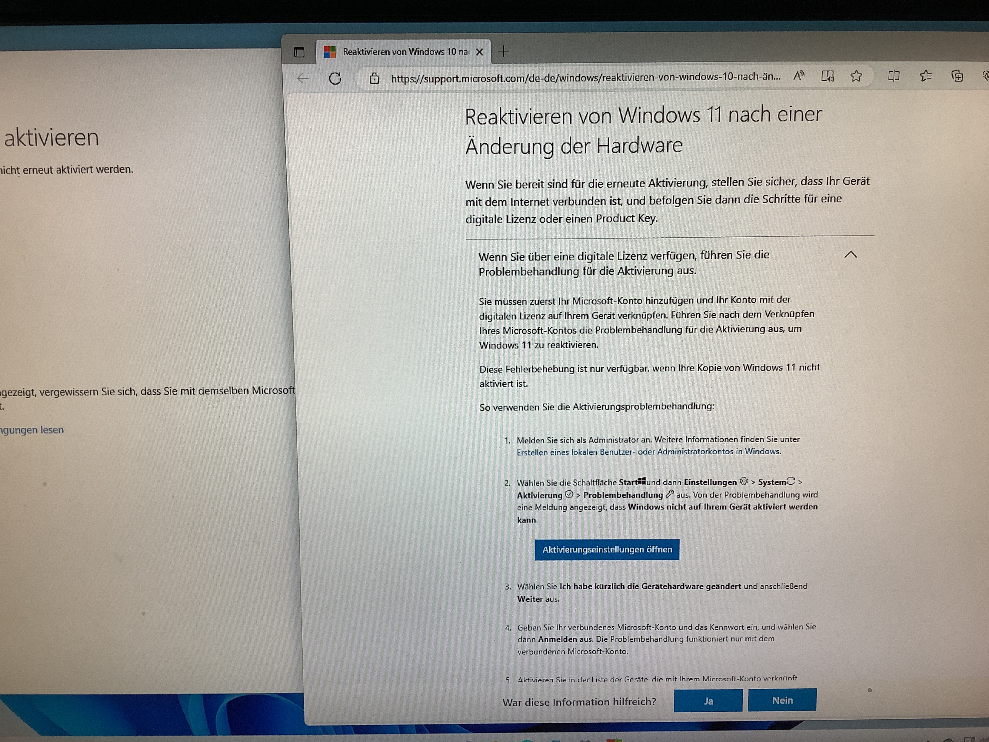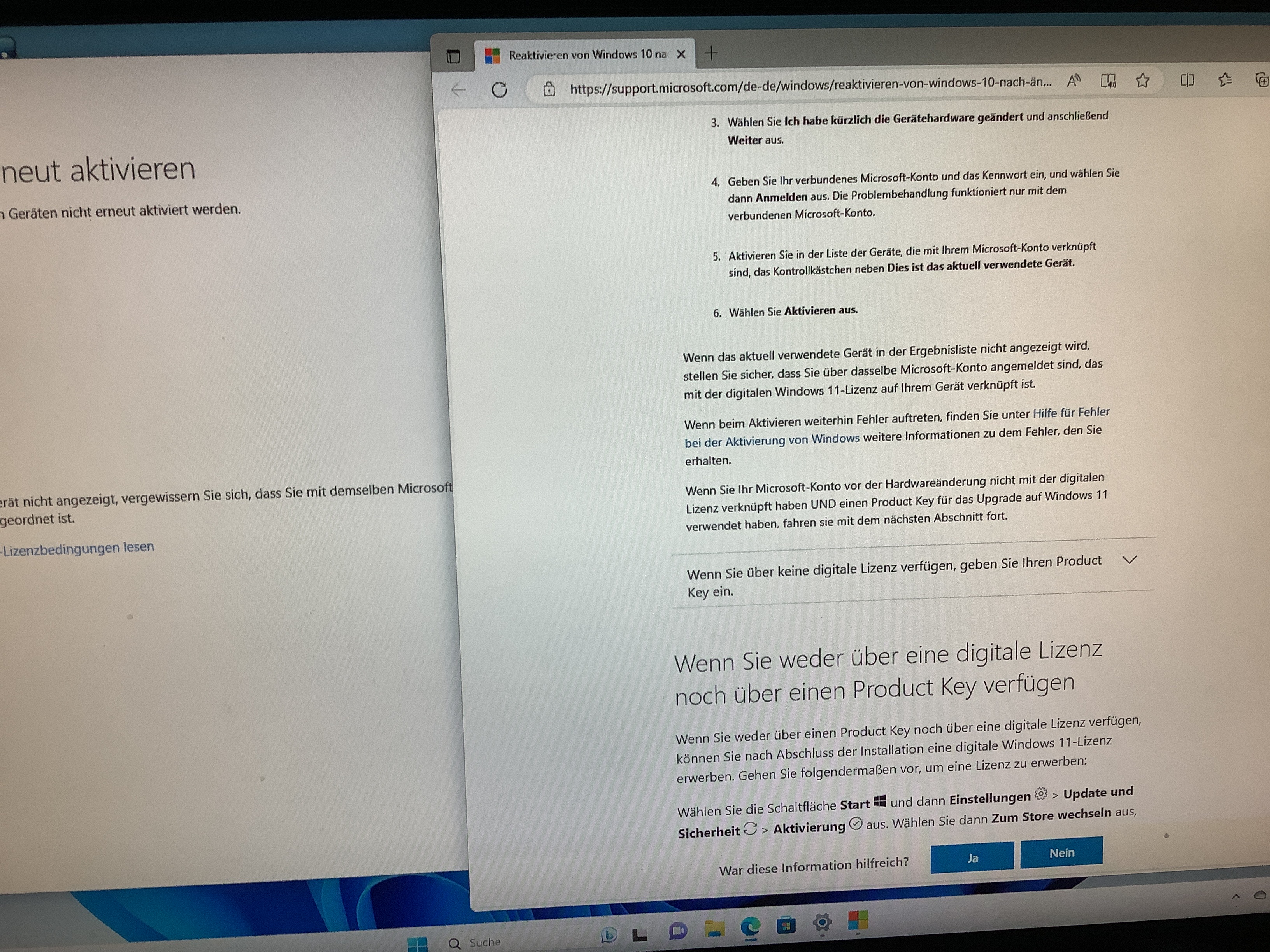 da steht jetzt: Windows wurde durch eine digitale, mit ihrem Microsoft-Konto verknüpfte Lizenz aktiviert.