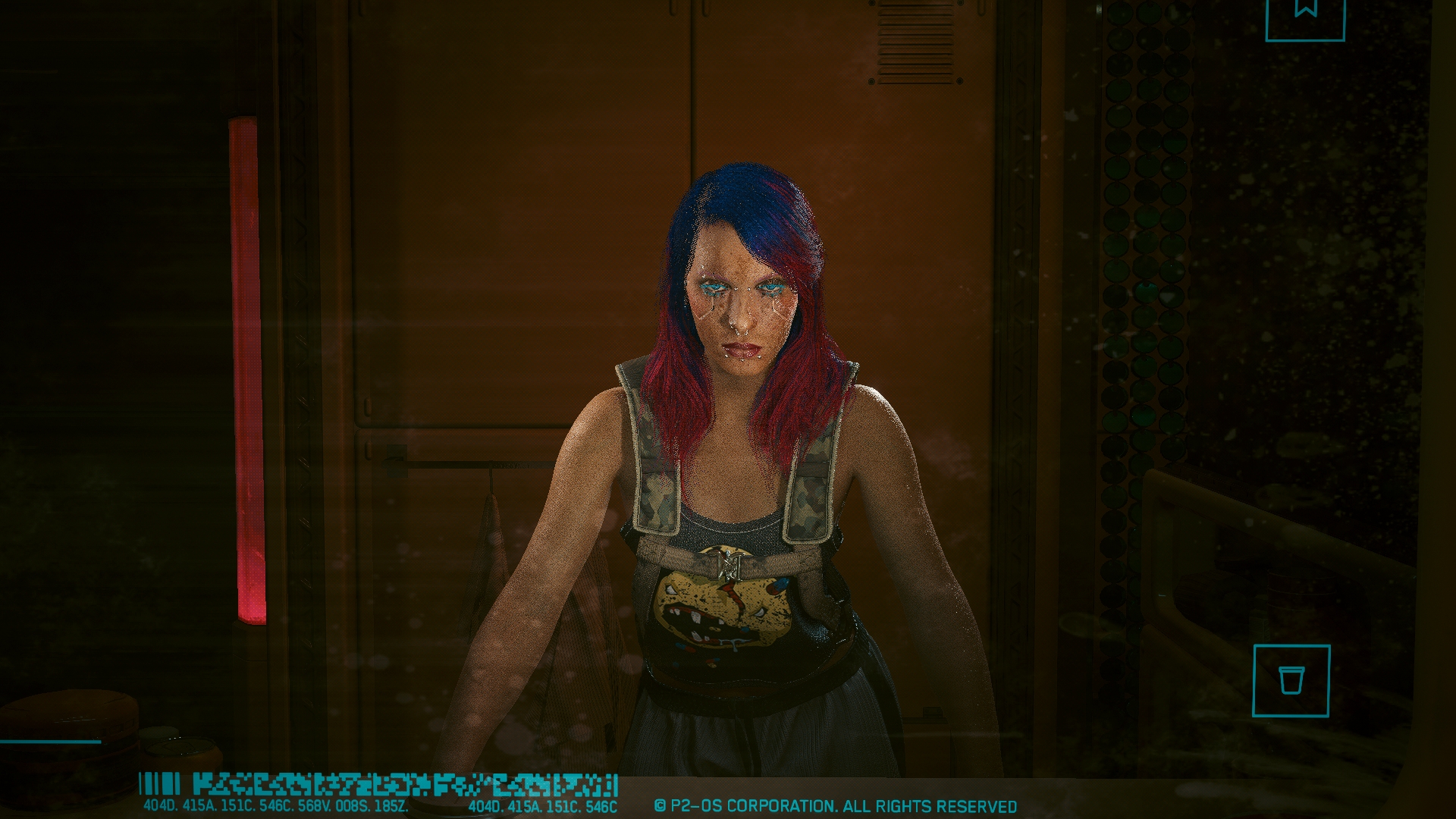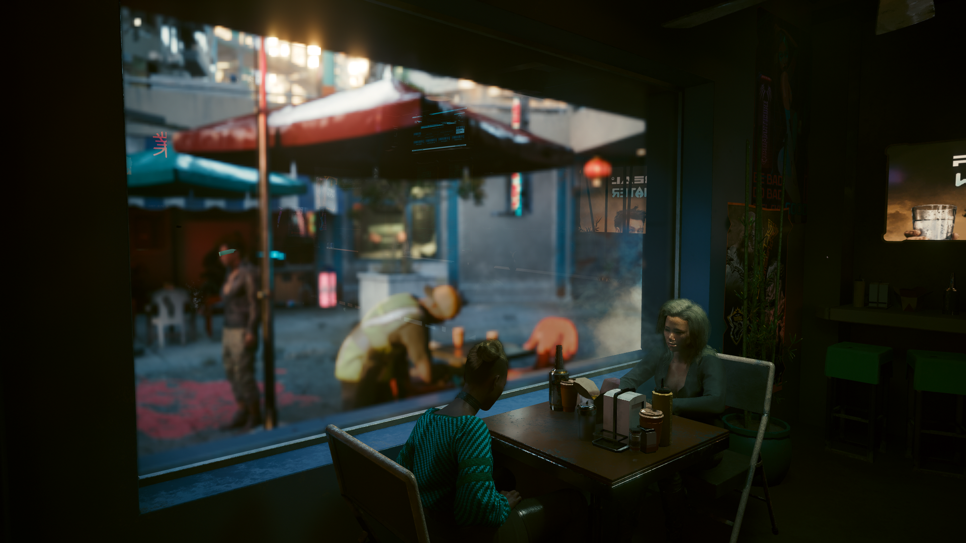 Während die meisten Texturen schön scharf aussehen sind manche (gerade manche Werbeanzeigen) sehr unscharf/verblasst. Als wären diese noch nicht richtig geladen. Spezieller Fall: Das mit dem "Netz" (oben vom Spiegel) ist auch bei der Textur des Automaten so der in Vs erster Wohnung steht. Anmerkung: Ich hatte mit Patch 2.0.2 angefangen zu spielen und nun seit Patch 2.1 habe ich auch vermehrt Texturflackern in manchen Bereichen (z.B. da wo man die Frau am Anfang aus der Badewanne holt).