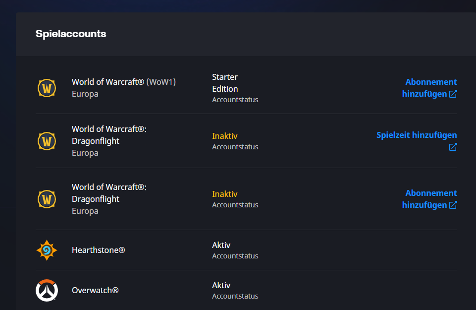 Hab da mal ne kurze Frage zu WoW weil ich bei der Sache mit den ganzen Erweiterungen nicht durchsteige. Wie kann ich erkennen welche Erweiterungen in meinem Account enthalten sind? Ich kann mich daran erinnern damals 1 oder zwei Erweiterungen gekauft zu haben. Allerdings wird mir in meinem Battlenet Account mehrere WoW Versionen angezeigt. Sehe ich das richtig, das ich, zumindest, mit einer Version alle Erweiterungen bis einschließlich Dragonflight habe ?