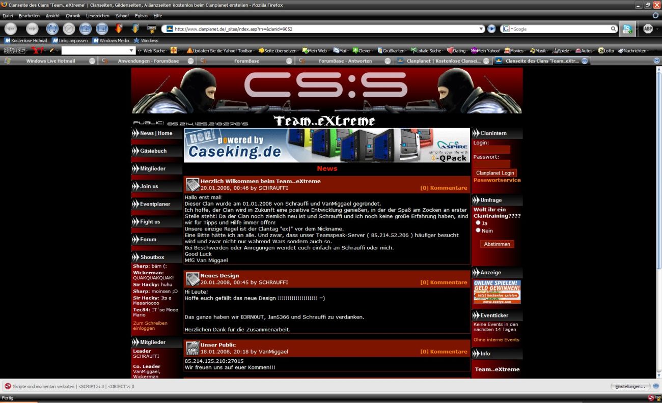 Ende Februar geht mein allzeit geliebter CSS-Server offline und somit löst sich auch der Clan auf. Die Gründe dafür bleiben mal außen vor. Jedenfalls löst sich damit eine community auf, die sich über Jahre hinweg aufgebaut hat. Mittlerweile gibt es sehr viele Stammspieler, die sich auch untereinander kennen, eine richtig gute Atmosphäre also. Aber nun soll es vorbei sein, da es ,,Unstimmigkeiten'' unter den Admins gab.
