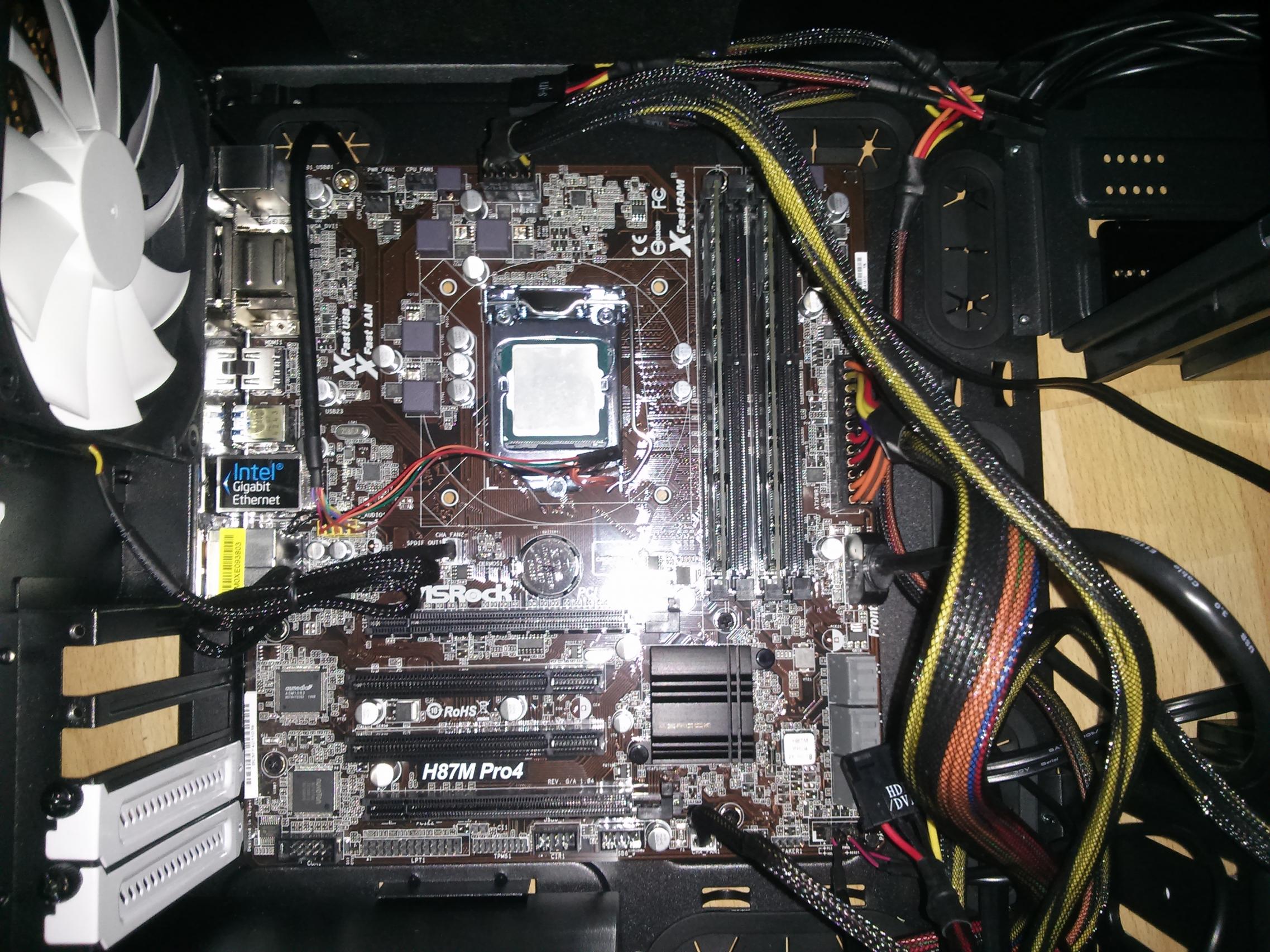 Ich versuche das Ganze gleich mal ohne Graka, und mit Audio-Kabeln. Dafür brauche ich aber ein wenig, weil ich vorgestern eine der Halterungen des CPU-Kühlers kaputt gemacht habe und weil der jetzt nicht mehr richtig im Mainboard festsitzt. Bevor ich den PC wieder anmache, mache ich gleich mal den Boxed-Lüfter rein. Beim Boxed-Lüfter ist die Wärmeleitpaste doch schon drauf oder? Das heißt, ich muss nur die Wärmeleitpaste auf der CPU entfernen und dann einach den Boxed-Lüfter draufstecken, richtig?