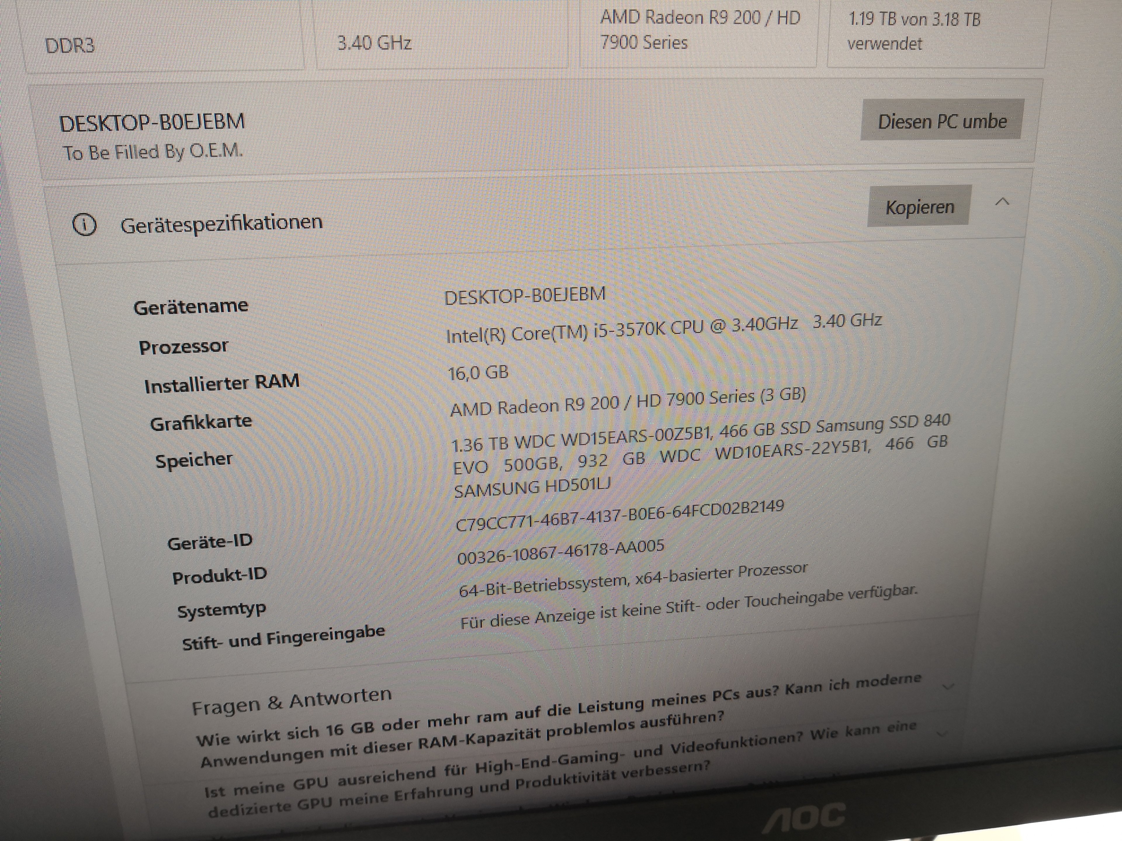 Ich habe hier einen Computer Intel i5-3570K 3,4Ghz mit 16GB Ram und einer AMD Radeon R9 200 HD 7z900 Series Grafikkarte mit 4 eingebauten Festplatten die gedacht sind umzukopieren.